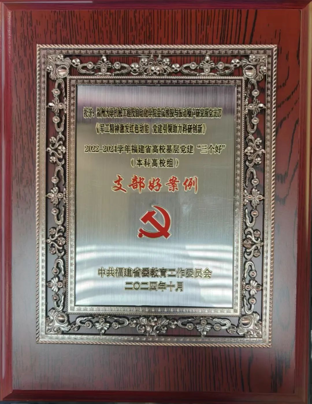 金属橡胶与振动噪声研究所党支部《军工精神激发红色动能,党建引领助力科研创新》荣获福建省“支部好案例”。(支部书记 任志英教授)