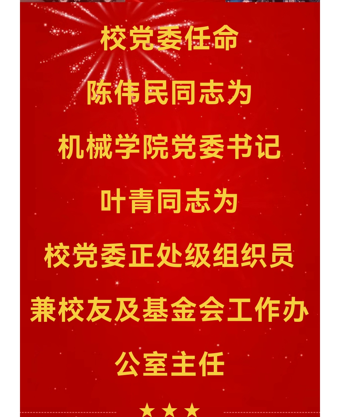 校党委任命陈伟民同志为机械大象传媒 党委书记,叶青同志为校党委正处级组织员兼校友及基金会工作办公室主任