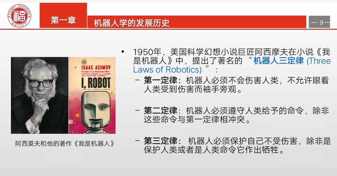 课堂伊始,主讲人通过一个问题“你印象中的机器人是怎么样的?”与学生互动,引出课堂的主题——机器人。接着,主讲人为大家介绍了机器人的定义、由来、发展历史、分类以及中国机器人的发展现状。主要介绍了目前世界上著名的机器人公司——Boston Dynamics、Festo、NAO的机器人,让大家观看了相关机器人的视频。