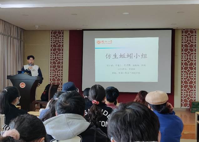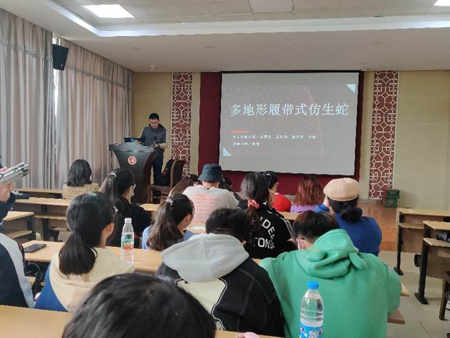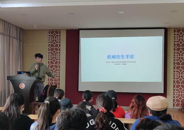 机械创新设计大赛优秀团队代表通过PPT展示的形式,依次为大家介绍了各小组在大赛“仿生机械”和“生态修复机械”主题下的奇思妙想和创新设计。