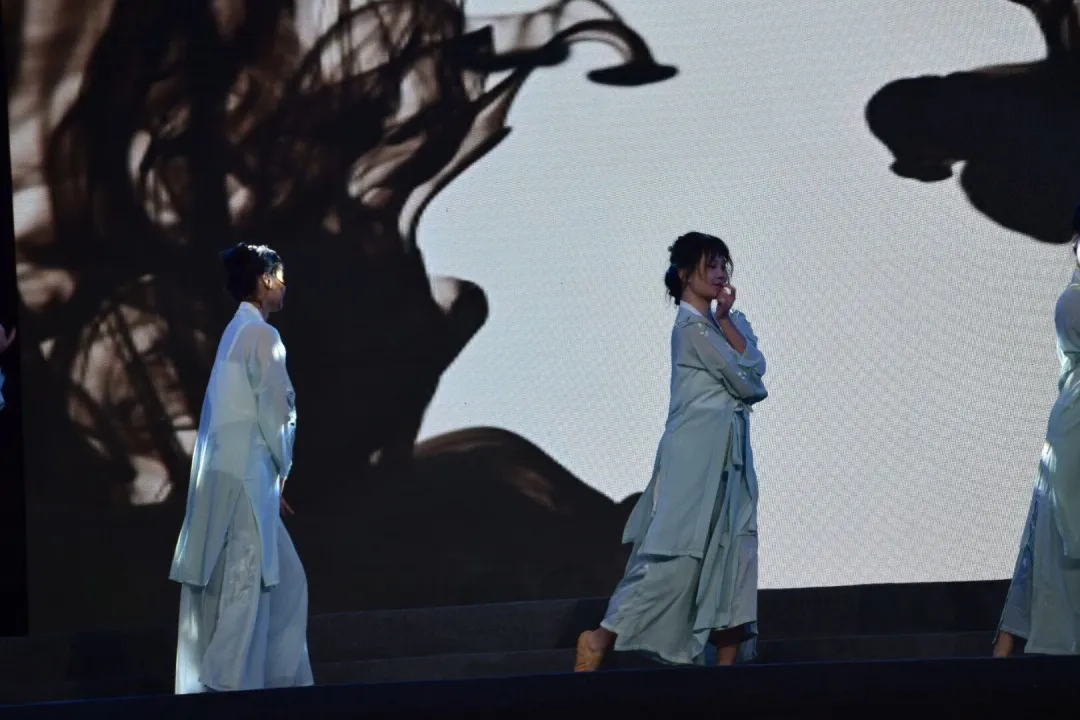 晚会正式开始,随着灯光聚焦到舞台的一侧,一行古风少女以曼妙的舞姿飘向舞台中央,舞者们流畅的步伐、轻盈的身姿,使台下的观众们都摒住了呼吸,观众们已然沉浸在舞蹈与音乐交织下的祥和气氛。
