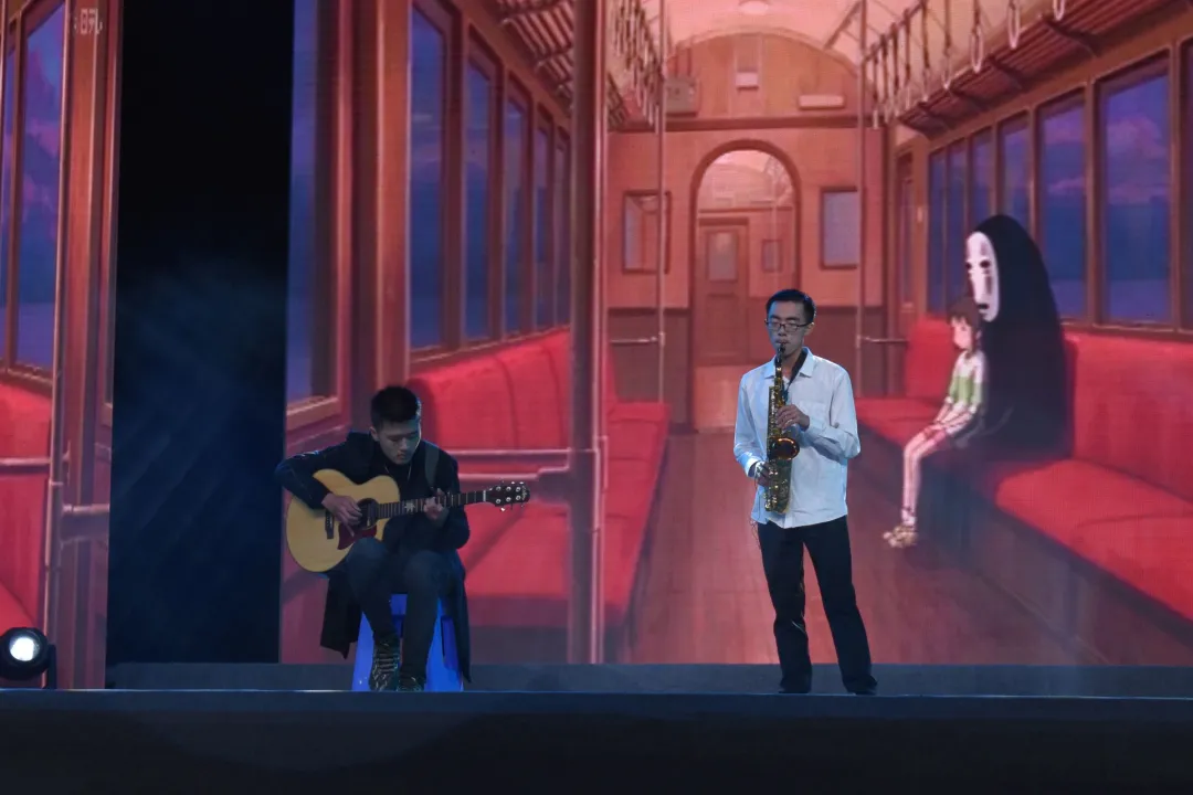 的两位同学用吉他和萨克斯为我们带来《千与千寻》中脍炙人口的主题曲《Always with me》,当吉他声充盈会场,当萨克斯响彻心房,便无需多言,只要用心欣赏。时光在此刻或快或慢,都随着悠扬的乐曲深深融入到旋律之中。