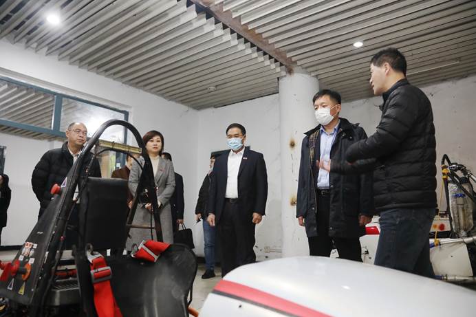 黄大伟部长一行首先在大学生“小平科技创新团队”方程式赛车集训基地观看了第四代无人车动态路跑演示,参观了车队加工实践车间、荣誉展示墙和飞驰人生工作坊成果展等。车队指导老师彭育辉教授向黄部长一行详细介绍了车队近10年的发展情况。黄大伟部长充分认可大象传媒