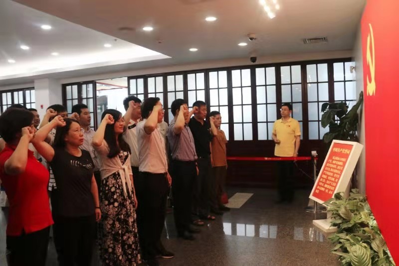 怀着对前辈先烈们的崇敬之心,党员同志们步入一大会址纪念馆。馆内宣誓厅悬挂着巨幅中国共产党党旗,面对党旗,院党委书记陈为旭同志带领全体党员一起重温入党誓词。在陈书记的领誓下,铿锵有力的宣誓声响彻大厅。铮铮誓言,召唤着初心,提醒着每位党员要始终坚守“不忘初心、牢记使命”的信念,以坚强的党性和坚定的信念投入新时代的宏伟事业中去。随后,党员同志们瞻仰了中共一大代表群像浮雕。“前赴后继、救亡图存”、“风云际会、相约建党”、“群英汇聚、开天辟地”等专题展区,陈列着大量实物、图片、雕塑和沙盘。阅览建党时的一件件珍贵文物,令人感慨也令人思索,在这个共产党人共同的精神家园中解读建党初心,从党的光辉历史中汲取奋进的力量,不忘初心,牢记使命,团结一心,真抓实干。