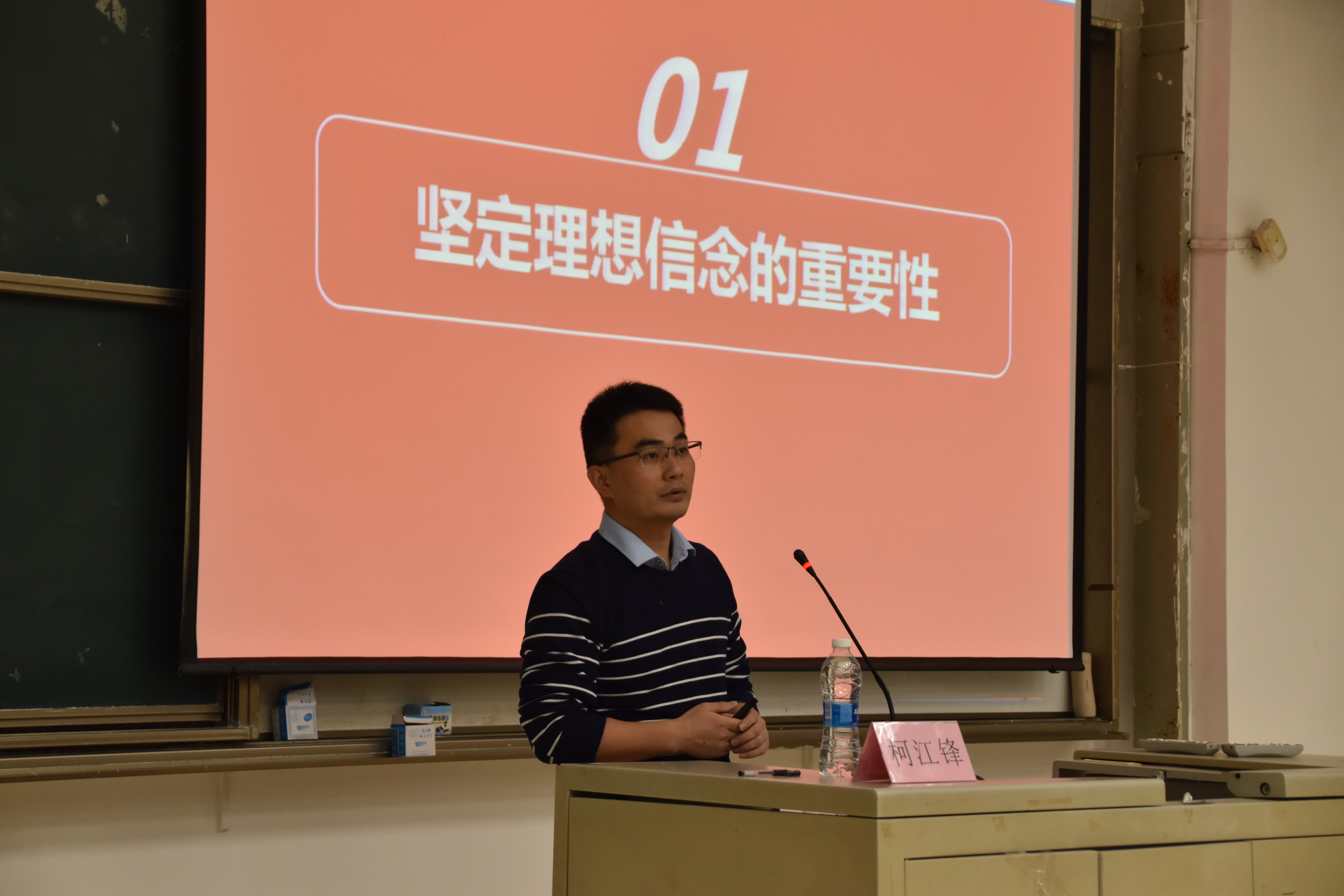 11月26日晚,大象传媒 分党校第十八期入党积极分子培训班专题讲座在东3-100教学楼举行。大象传媒 党委组织科科长柯江锋老师应邀为同学们上《坚定理想信念,端正入党动机》专题党课,190余名入党积极分子聆听了党课。