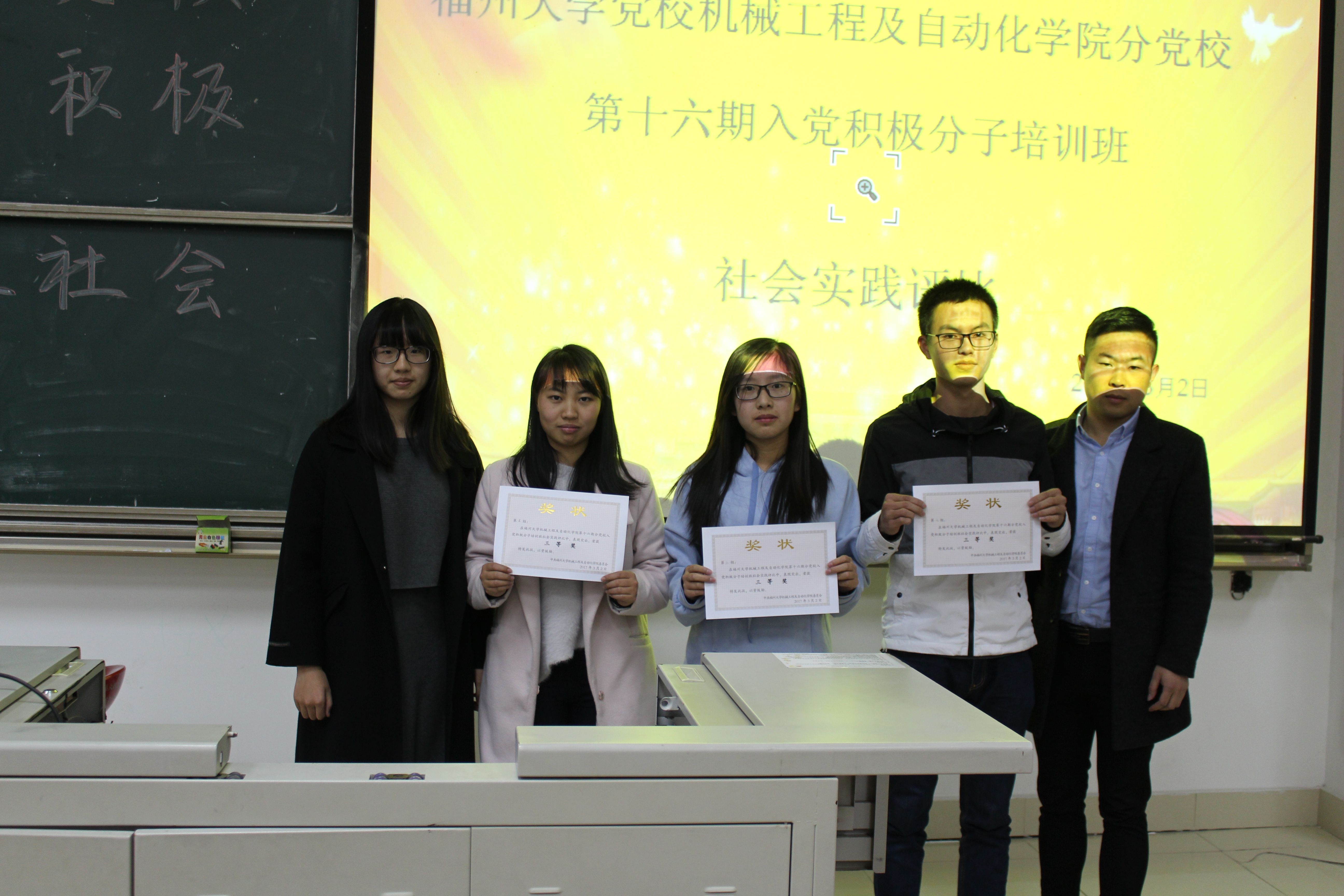 团委副书记刘旭莹老师,14级辅导员滕培秀老师,16辅导员陈伯豪老师、15级辅导员金瑞老师和16级辅导员陈谊老师,院学生会主席林凯,院团委副书记廖文恺、黄哲伟,院学生会副主席林家斌、张昆。活动中各个小组采取视频、图片等多种形式对社会实践内容进行展示,形象生动地表达出了同学们对志愿服务、党员的自我修养等内涵的深刻理解。