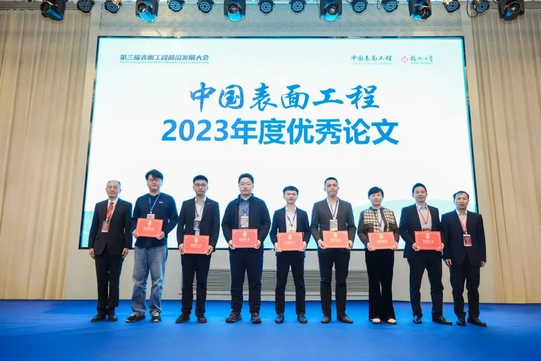 副校长郭文忠教授为获奖者代表颁发获奖证书。中国机械工程学会副秘书长王淑芹宣读了《中国表面工程》2023年度优秀论文名单,主编邵天敏教授、副主编谭俊研究员为获奖代表颁发了获奖证书。