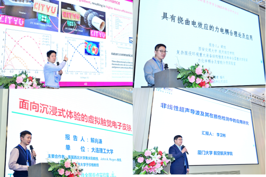 在大会特邀报告环节,香港大学陆洋教授、西安交通大学梁旭教授、大连理工大学解兆谦教授、厦门大学李卫彬教授分别围绕高分辨率材料、力电耦合设计、柔性电子器件、超声波检测等前沿课题作了精彩报告,现场反响热烈。