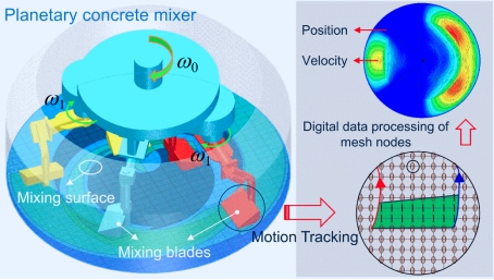 论文涉及流体力学、建筑材料、机械、电子、计算机技术等多个领域的前沿技术,旨在解决土木工程领域重要装备的结构优化问题。研究主要针对干硬性混凝土制砖生产线中的关键装备——立轴行星搅拌机所存在的搅拌效率低、难以匹配制砖生产线速度的技术难题展开研究。基于搅拌刮刀的运动学模型和轨迹追踪算法提出了一种搅拌机混合效率的数字化分析方法,该算法可用于准确评估搅拌机结构变化对搅拌釜内不同区域物料的搅拌效果的影响。基于该数字化分析方法及其结构优化,实现了搅拌过程的可视化分析,并且成功将优化后搅拌机的搅拌效率提升了18% 以上,有效解决了搅拌机与制砖生产线的效率匹配问题。