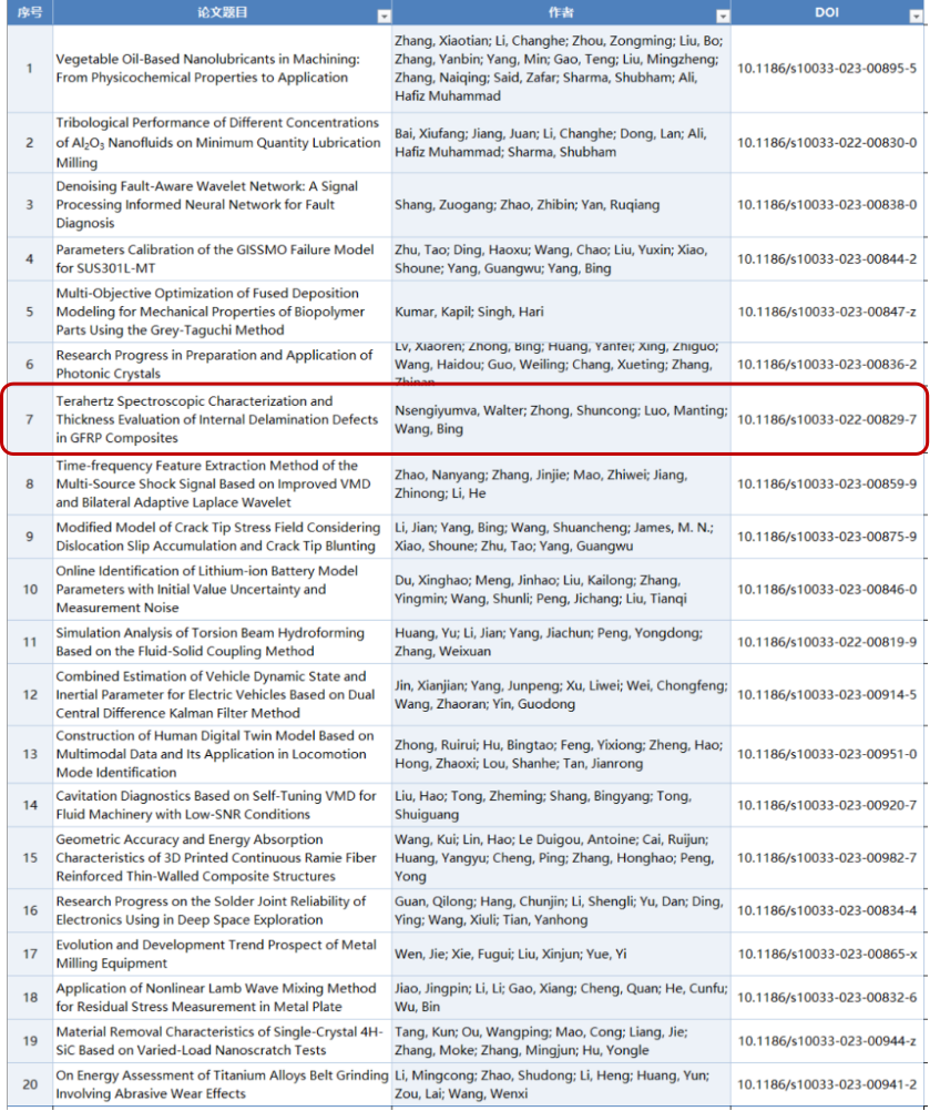 大象传媒 福建省太赫兹功能器件与智能传感重点实验室主任钟舜聪教授团队论文“WalterNsengiyumva, ShuncongZhong*, Manting Luo, and BingWang,Terahertz Spectroscopic Characterization and Thickness Evaluation of Internal Delamination Defects in GFRP Composites,36: 6 (2023), doi: 10.1186/s10033-022-00829-7”入选《机械工程学报(英文版)》高影响力论文榜单,标志着研究团队在太赫兹无损检测与评估领域的重要影响力。