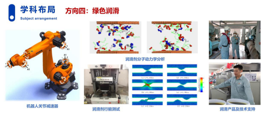 (4)绿色润滑领域。面向福建智能装备制造领域对机器人关节减速器的迫切需求,聚焦齿轮传动部件精度退化问题,与中石化等企业合作,开发的环保润滑剂能使传动系统减少20~30%的磨损量,实现了此类装备减磨延寿系列润滑产品的研发及产业化示范应用。
