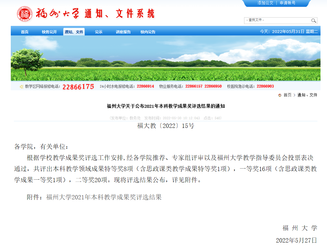 钟舜聪教授领衔的“全员卓越机械工程人才的‘预研发’培养模式改革与实践”教学成果荣获特等奖。