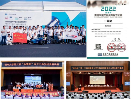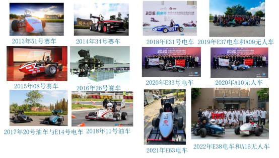 的创新实训平台上,自主研制了13辆方程式赛车(包括5辆汽油机赛车、5辆电动赛车、3辆无人驾驶赛车),获得20多个奖项,是“福州地区首支大学生方程式赛车队”、“福建省首支电动大学生方程式赛车队”和“福建省首支无人驾驶大学生方程式赛车队”,尤其是2022年首次获得新的突破,电动赛车首获全国一等奖。