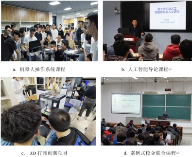 在课程实践环节方面,将创新实践环节调整为全新的3D绘图、传动系统、机构创新与电子电路4个创新设计项目。大一上的在3D绘图创新实践项目中,学生自学三维建模软件,以及3D打印的使用,为工程制图能力做储备;大一下的传动系统创新实践项目中,学生自学传动设计,3D打印、装配和调试等,为机械设计做准备;大二上的数字电路创新实践项目中,学生自学硬件焊接、电路调试、驱动原理等,为电工学和单片机做储备;大二下的机构设计创新实践项目,学生自学结构设计、3D打印、装配和调试等,为机械原理做准备。