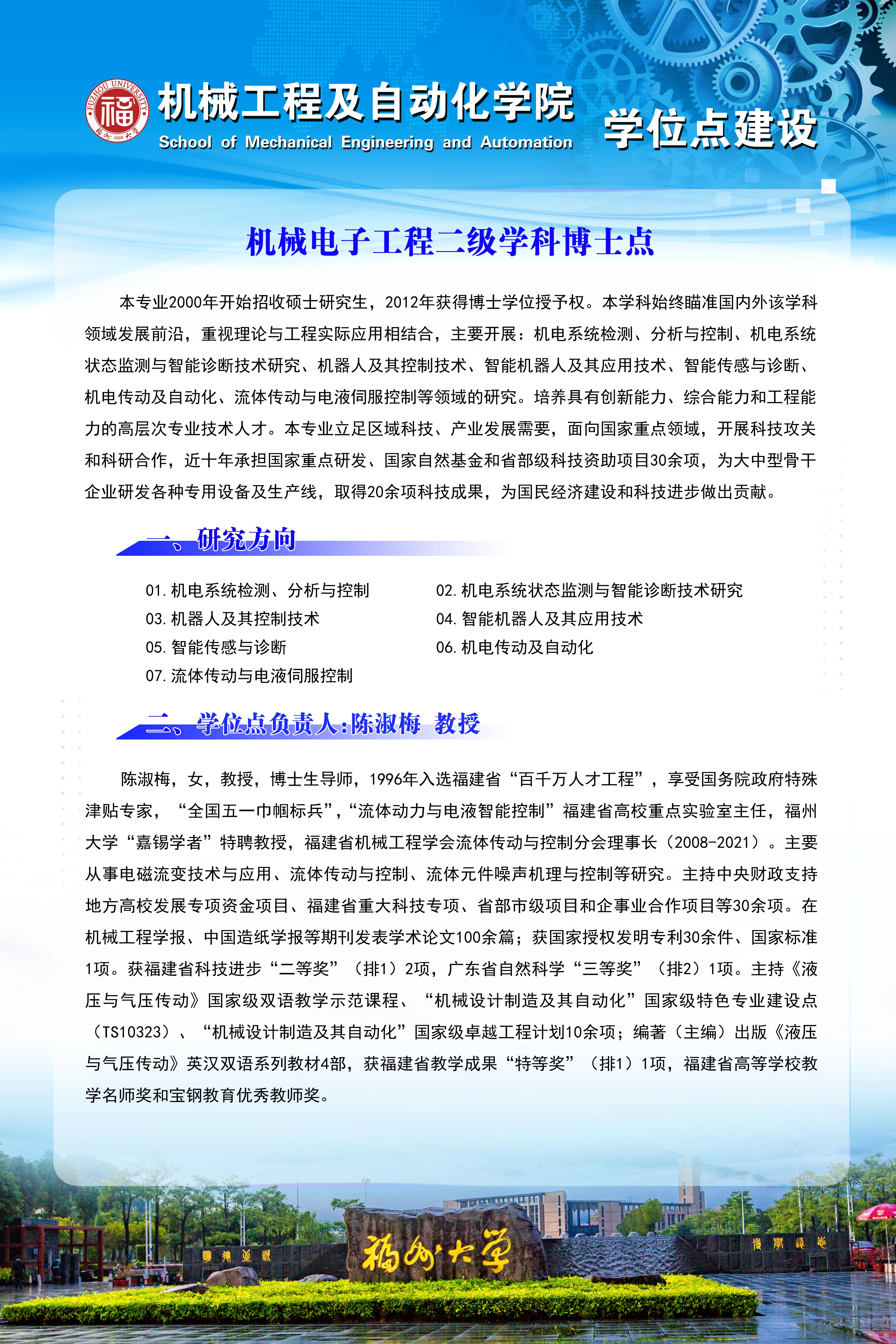 机械电子工程二级学科博士点