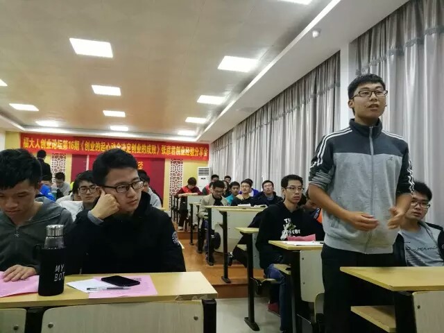 张彦君先生:在校园里可以有一个大方向,服务同学,做有利于同学的事情,像阿里巴巴,滴滴打车这些创业项目他们成功的关键就在于帮助他人,解决了一些问题,这也是前面提到的创业的起心动念。