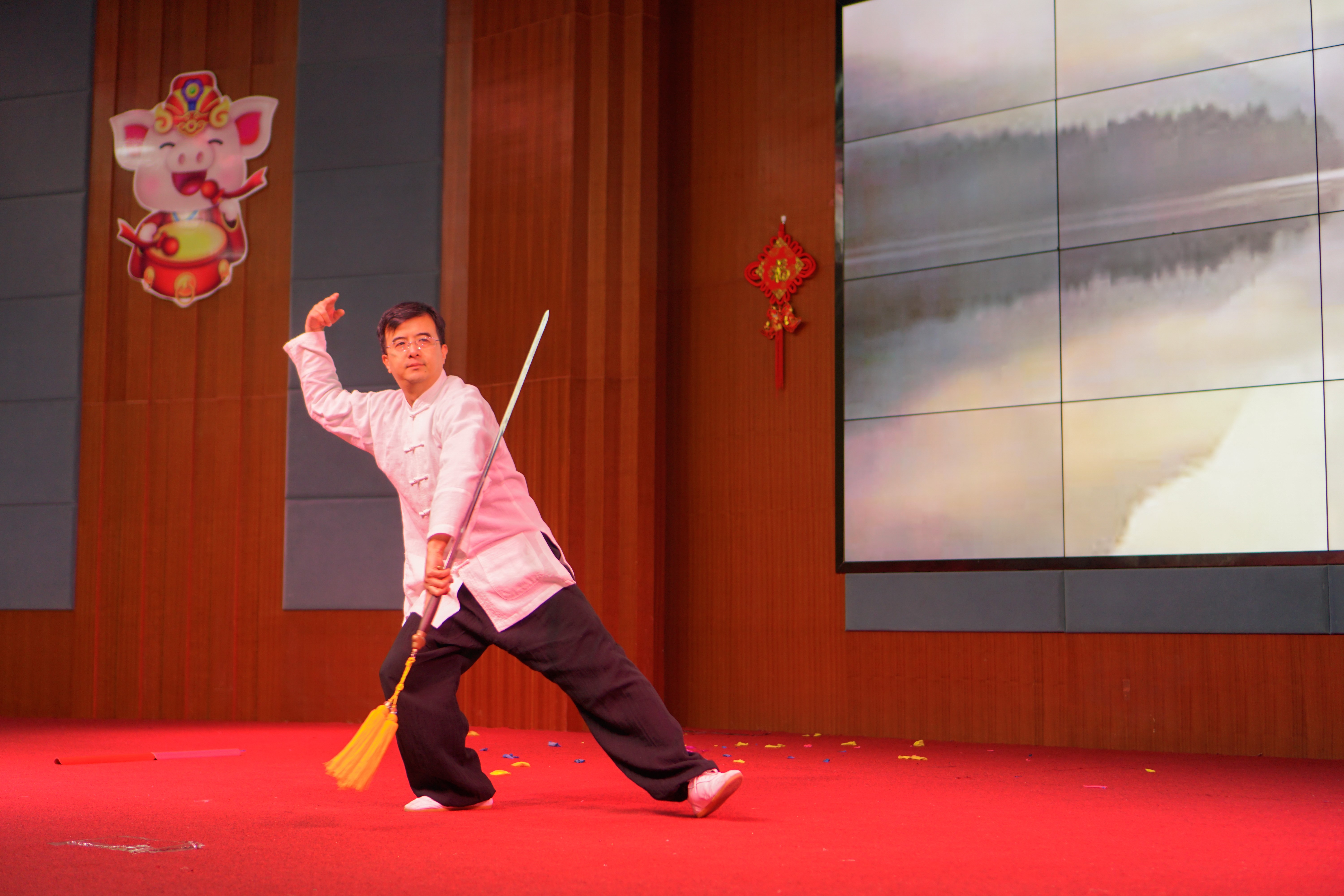 最后,茶话会进入联欢环节。在五个趣味游戏“踩气球”、“珠行万里”、“袋鼠跳跳跳”、“挤眉弄眼”、“新年新声”中大家热情参与;在节目“三句半”、“舞剑”、“一曲‘朋友’”中大象传媒