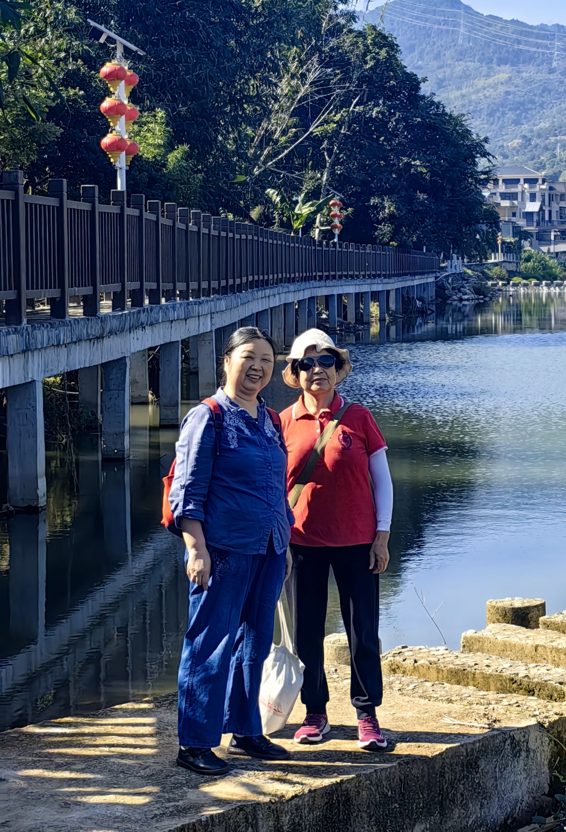老同志们一见面就握手相拥,相互关心彼此的身体和生活状况,喜悦洋溢在每一位老教师的脸上。大家驱车来到闽侯半岭村,这里古迹密布,山水相依,集人文与自然山水风光为一体。老同志们沐浴着秋日暖阳,呼吸着清新的空气,三五成群,欢声笑语,边走边聊,时而驻足远眺,时而拍照留念。