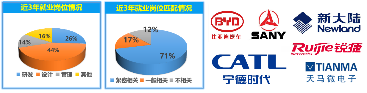 该专业毕业生发展前景好。以2021年数据为例,40%左右毕业生继续攻读硕士研究生,43%毕业生在比亚迪、宁德时代等国内知名企业就职,5%毕业生进入选调生、公务员、事业单位体系。该专业竞争力强、就业和升学匹配度高。