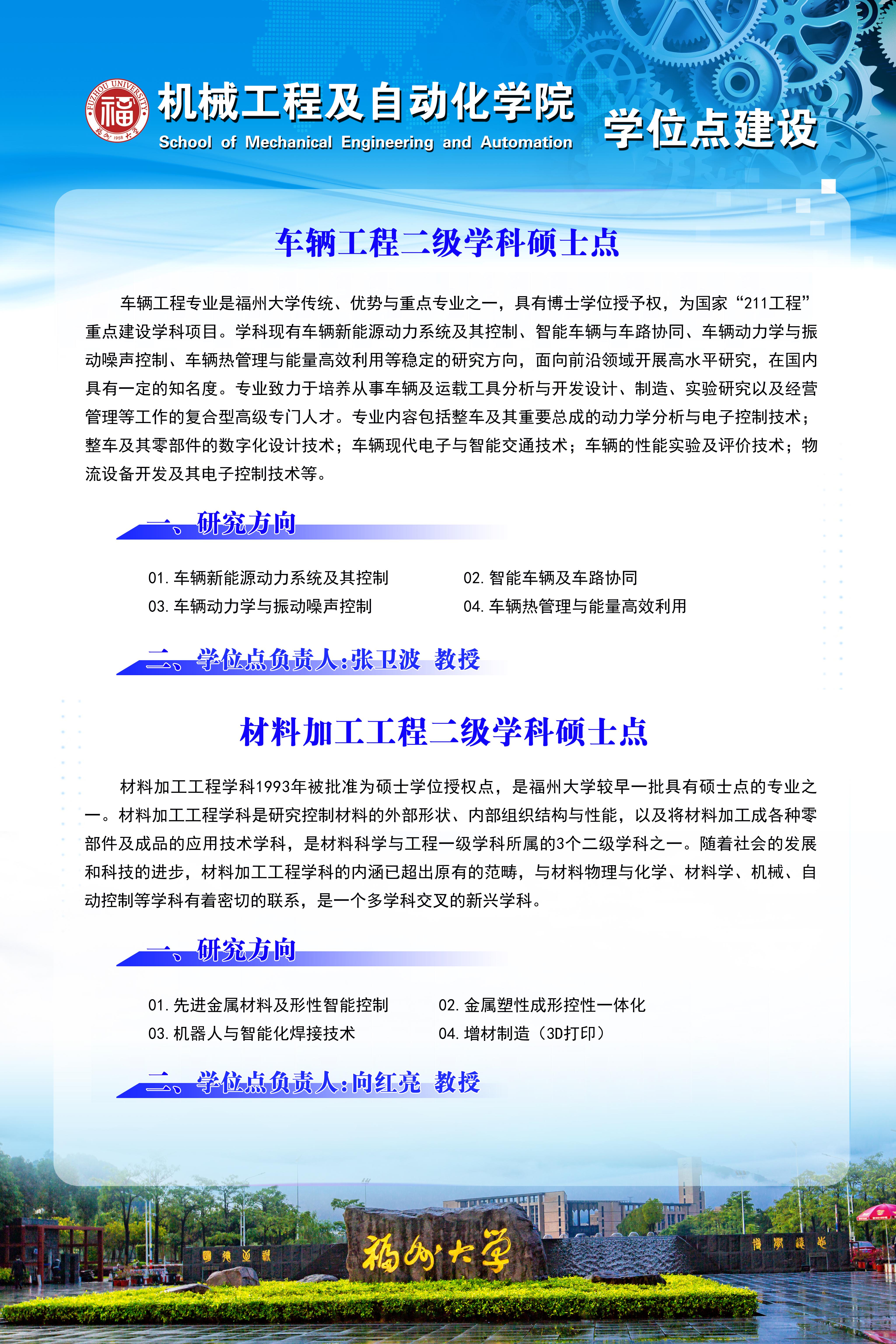 车辆工程二级学科硕士点、材料加工工程二级学科硕士点