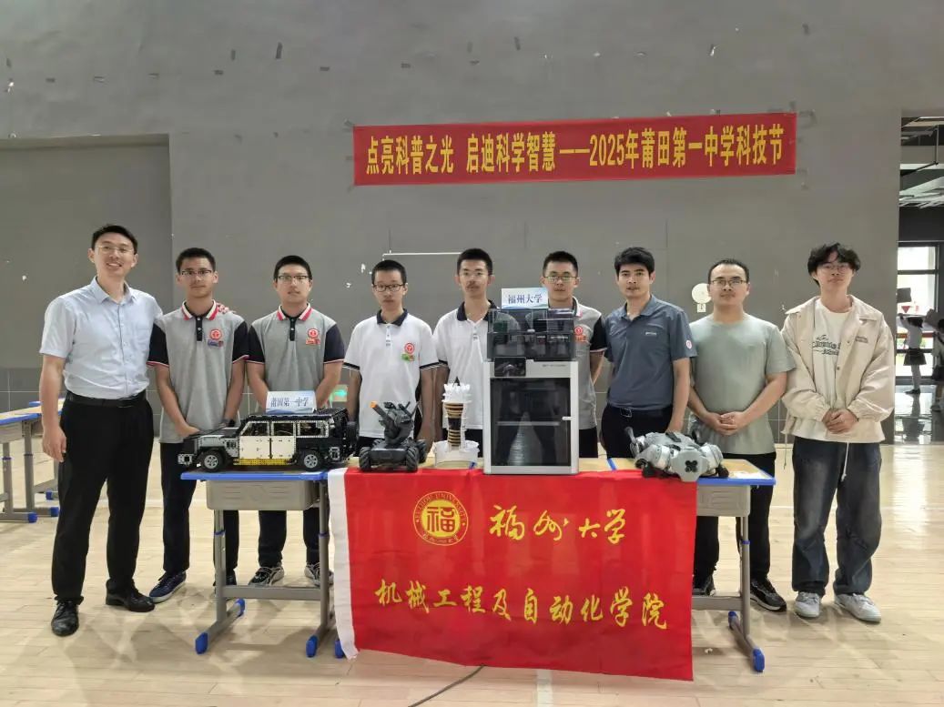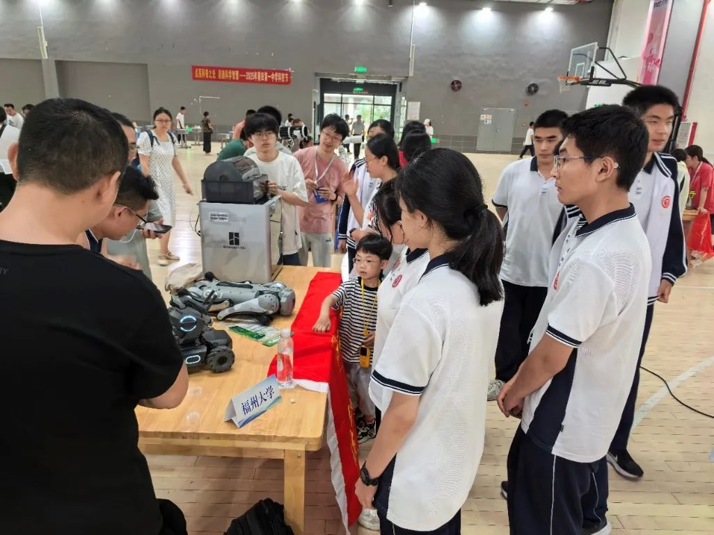 郭金泉教授、居学尉博士及硕士生代表前往莆田一中参加科技节活动。活动现场,通过动态演示与互动体验,让同学们直观了解机械工程与智能制造的技术应用。活动吸引了大量高中学生驻足交流,他们亲身体验科技操作,感受工程创新的魅力,进一步激发了青少年对科学探索的兴趣。同时,许多高中学生和家长就大象传媒
