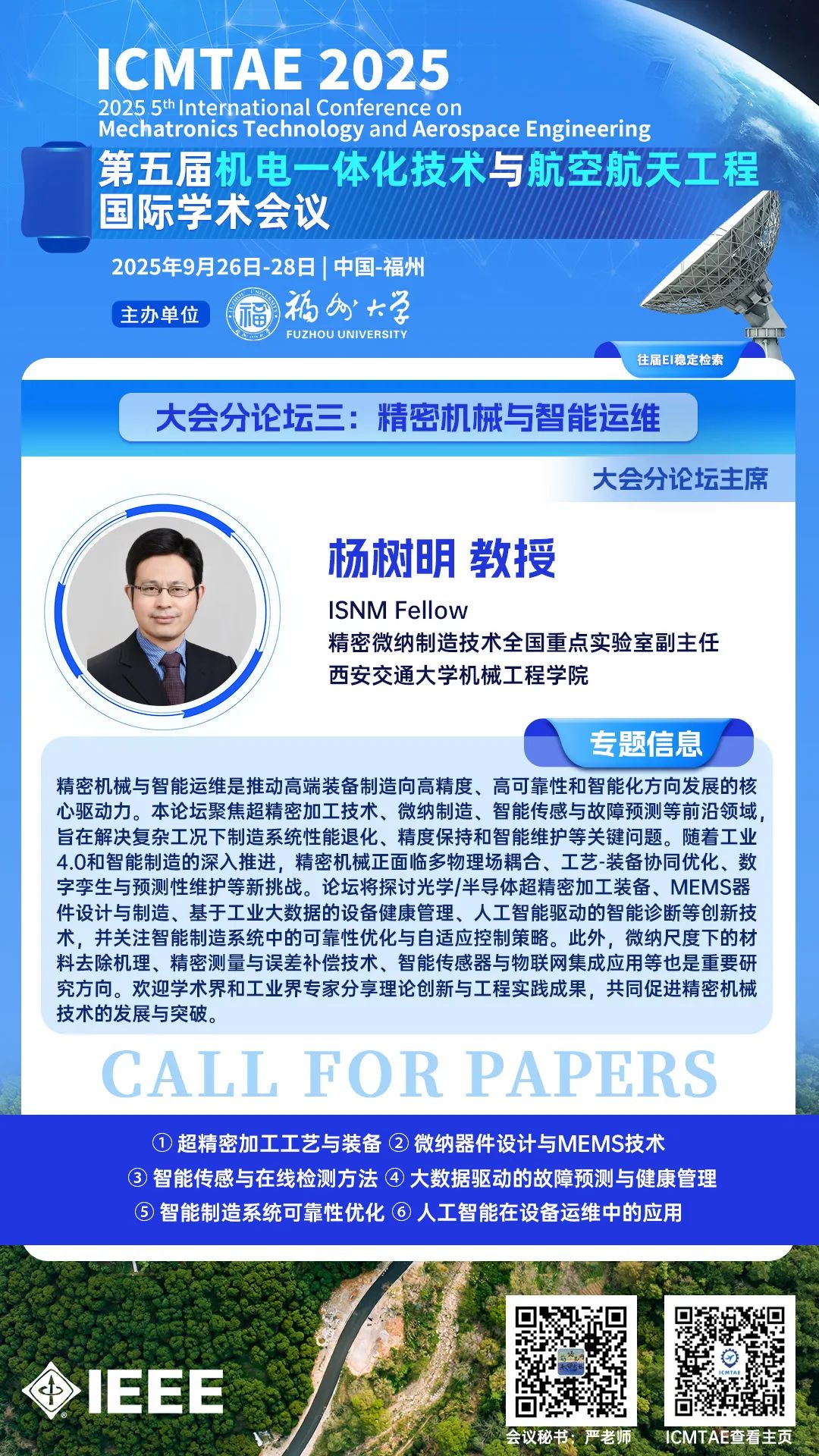 ICMTAE征稿邀请丨分论坛三:精密机械与智能运维