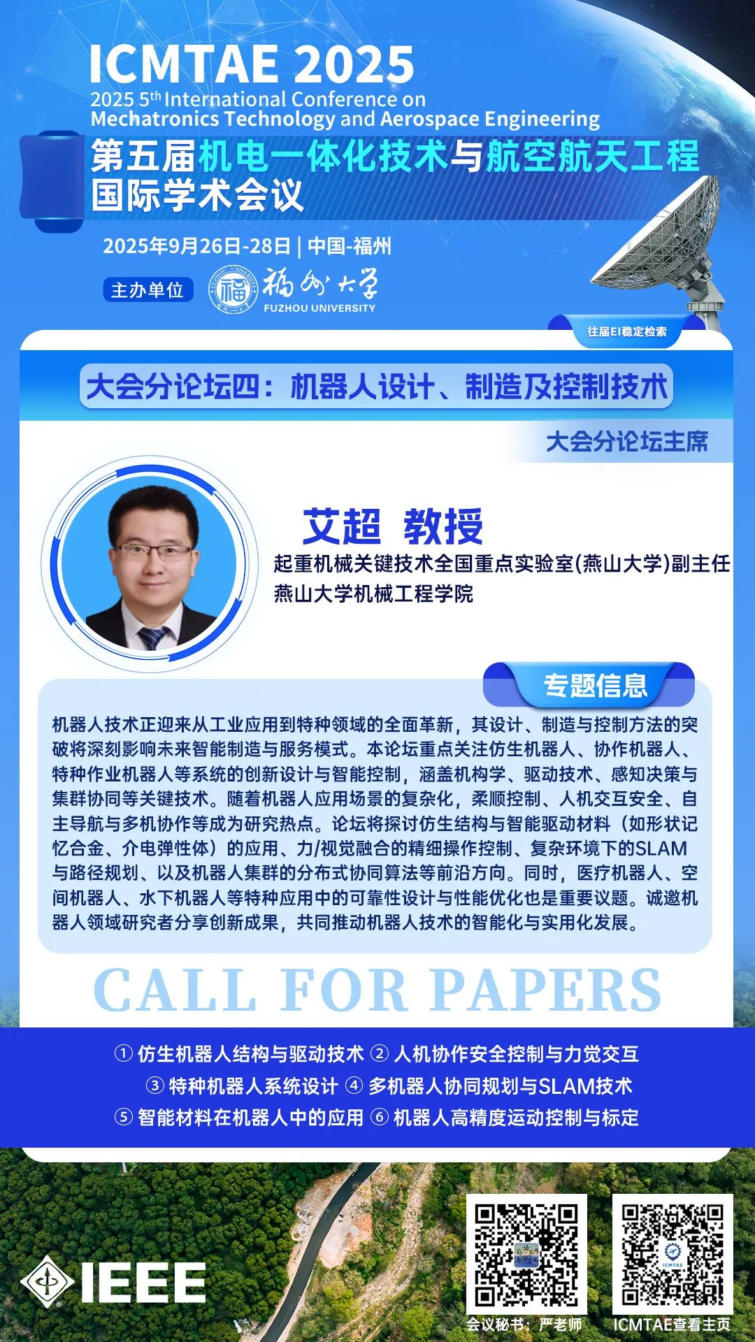 ICMTAE征稿邀请丨分论坛四:机器人设计、制造及控制技术