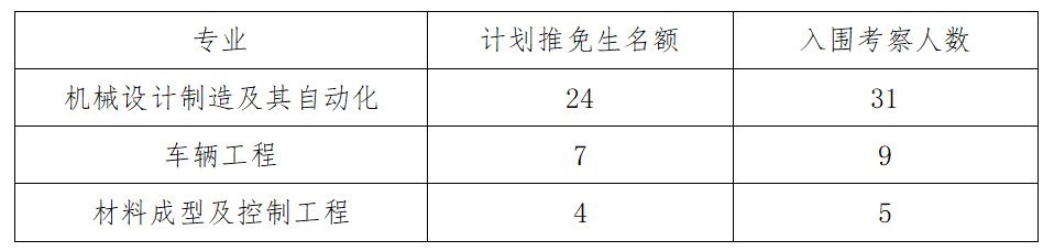 推荐比例按推免名额的1:1.3进行入围考察。各专业根据推免生名额和推荐比例确定具有申请推免资格学生人数 (按四舍五入确定),本科阶段学业综合成绩是推免工作最基础的遴选指标,具有推免申请资格学生名单根据各专业同年级学业综合成绩从高到低顺序确定。所有入围考察学生都可提出申请,申请者须填写《推荐免试攻读研究生资格申请书》,逾期视为放弃。具体情况如下: