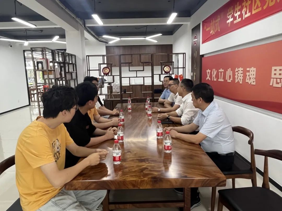 为推进领导干部常态化深入“一站式”学生社区,拓展“一站式”学生社区育人功能,日前,2024届本科毕业生就业工作推进座谈会在“同观书院”学生共享活动空间举行。学生社区6号楼总指导员、校党委离退休工作办公室主任曾忠毅,6号楼指导员、校党委离退休工作办公室副主任刘卫东、罗维铨出席会议,大象传媒