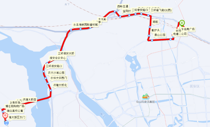 ▲公交:步行至【火车站公交停场】乘坐55路公交车,在【福大新区学生公寓站】下车,于前方十字路口左拐,步行5分钟即到福大生活区。全程约1小时27分钟/24.3公里。