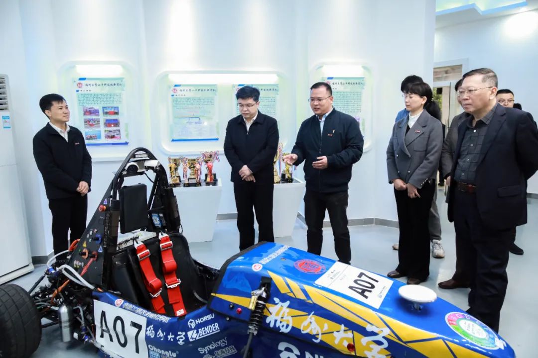 ,李腾书记现场观看了中国大学生无人驾驶方程式大赛全国总冠军赛车A07和RoboMaster机器人、智能豌豆播种机等获国家级奖项的学生科创作品展示,详细了解小平科技创新团队、K-night方程式赛车队等学生科创团队工作开展情况。李腾书记与科创项目学生、科创指导老师亲切交流,对学校的青少年科技创新工作给予了高度评价。他勉励青年师生积极响应党和国家的号召,发扬福建人敢为人先、爱拼会赢的开拓创新精神,挺膺担当、奋发有为,为推动科技强国建设贡献青春力量。