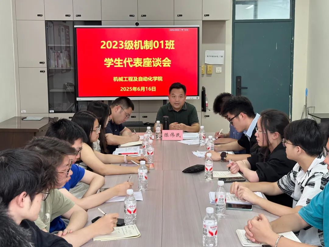 为加强大象传媒 领导深入一线联系学生工作,倾听学生心声,助力学生成长成才,6月16日,大象传媒 党委书记陈伟民与所联系班级2023级机制1班学生代表进行座谈交流。大象传媒 团委副书记李辉容、2023级机制1班班主任顾天奇、2023级本科生辅导员陈妙娜及部分学生代表参会。