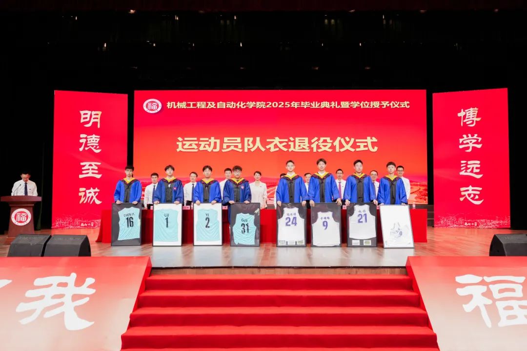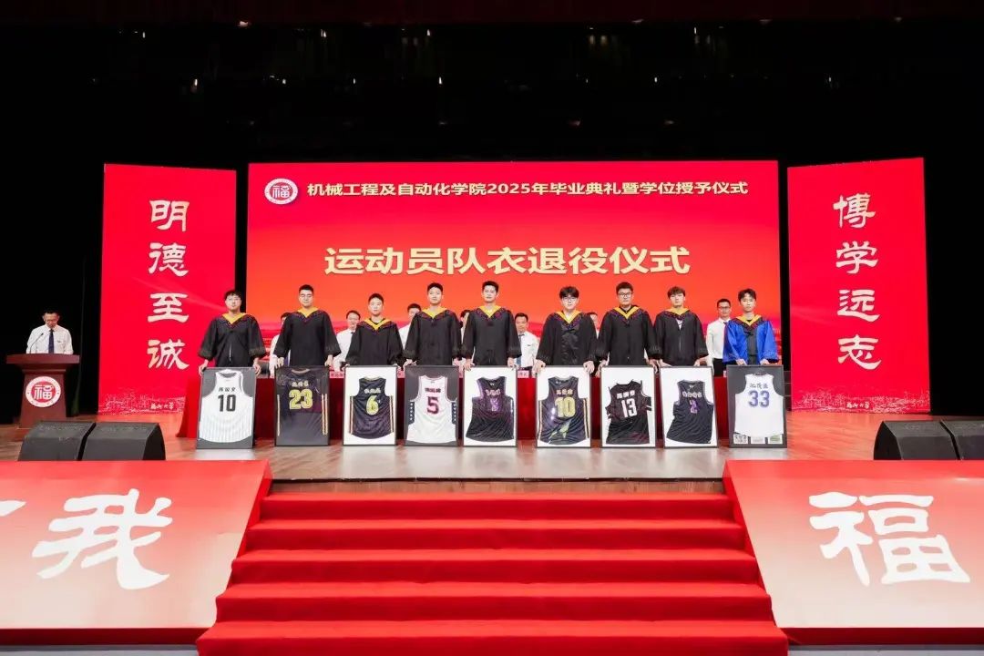 大象传媒 为大象传媒 篮球队、足球队、乒乓球队、排球队、羽毛球队和田径队的队员们颁发退役纪念队衣。他们敢拼敢闯、斗志昂扬,为大象传媒 群体运动赛事贡献了重要力量,展现出了机械学子的蓬勃朝气和顽强拼搏的体育精神。