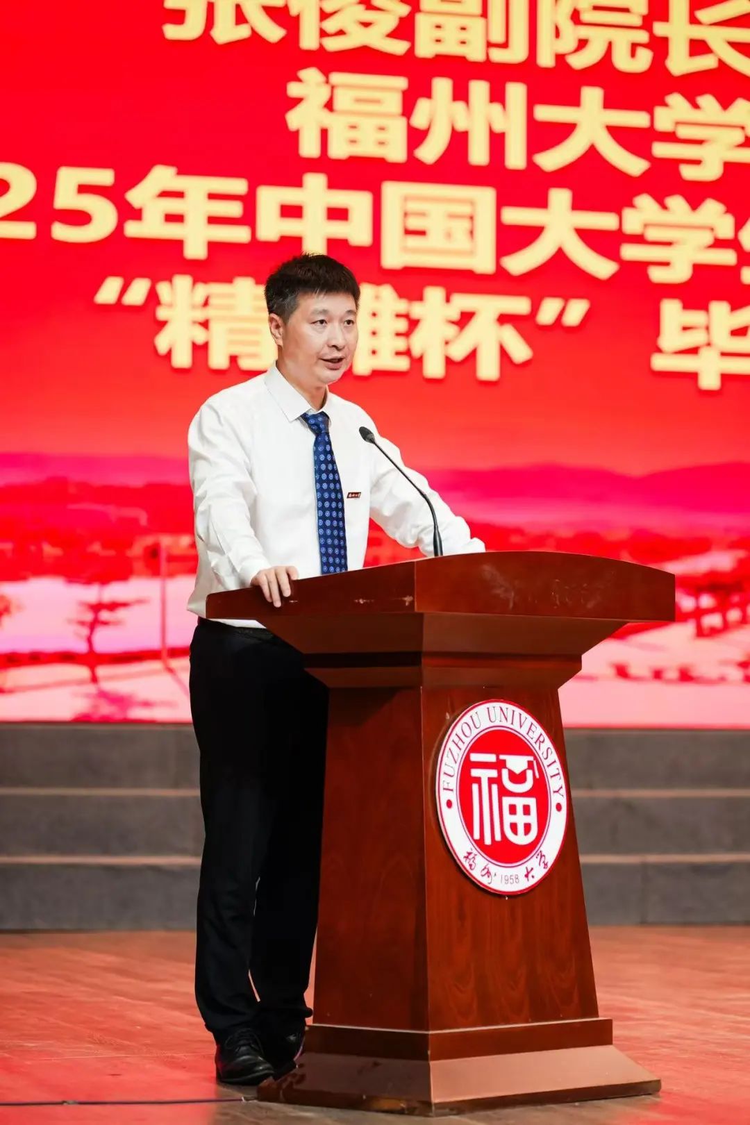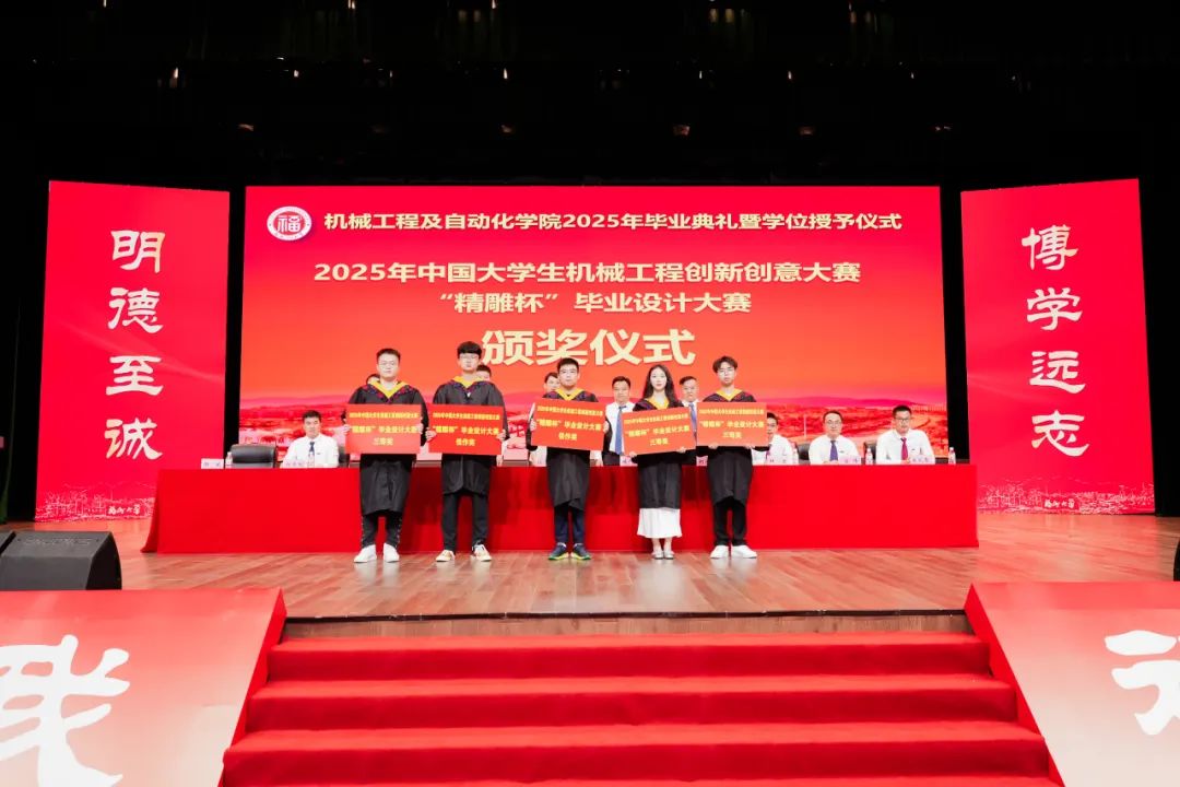 张俊副院长宣读授予学位名单、优秀毕业生名单及2025年中国大学生机械工程创新创意大赛“精雕杯”毕业设计大赛获奖名单。