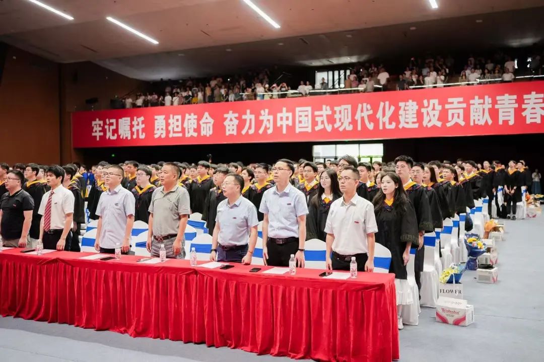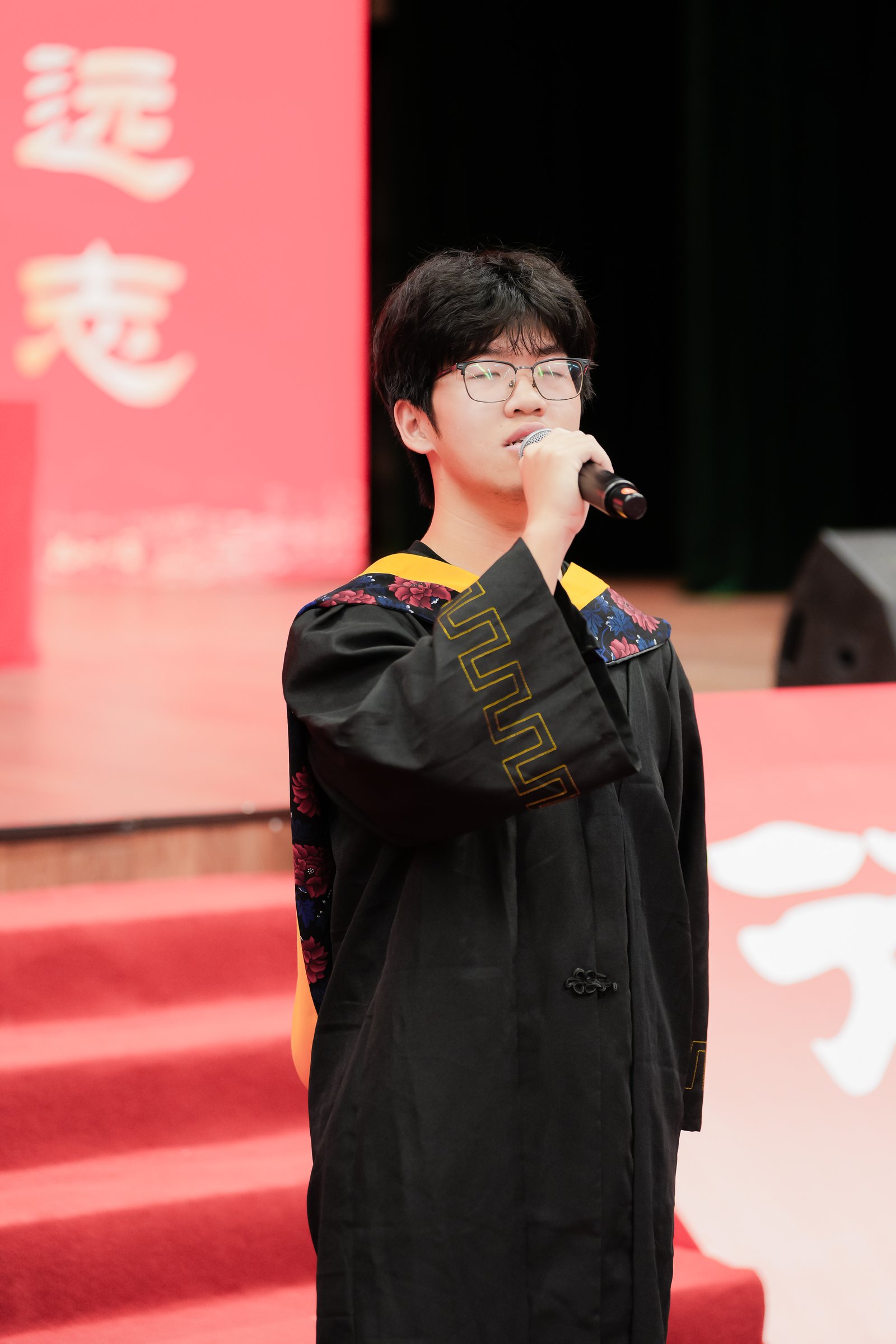 本科毕业生代表郭昇鑫同学、研究生毕业生代表郑孝源博士分别发言。他们向母校、老师、父母、同窗表达了感激之情,分享在校学习生活的点滴,追忆多载奋斗足迹,共话青年成长与时代担当,表示将秉持“明德至诚,博学远志”的校训,做敢想敢为的梦想家和善作善成的实干者,把个人理想融入国家使命,在奋斗中实现人生价值。