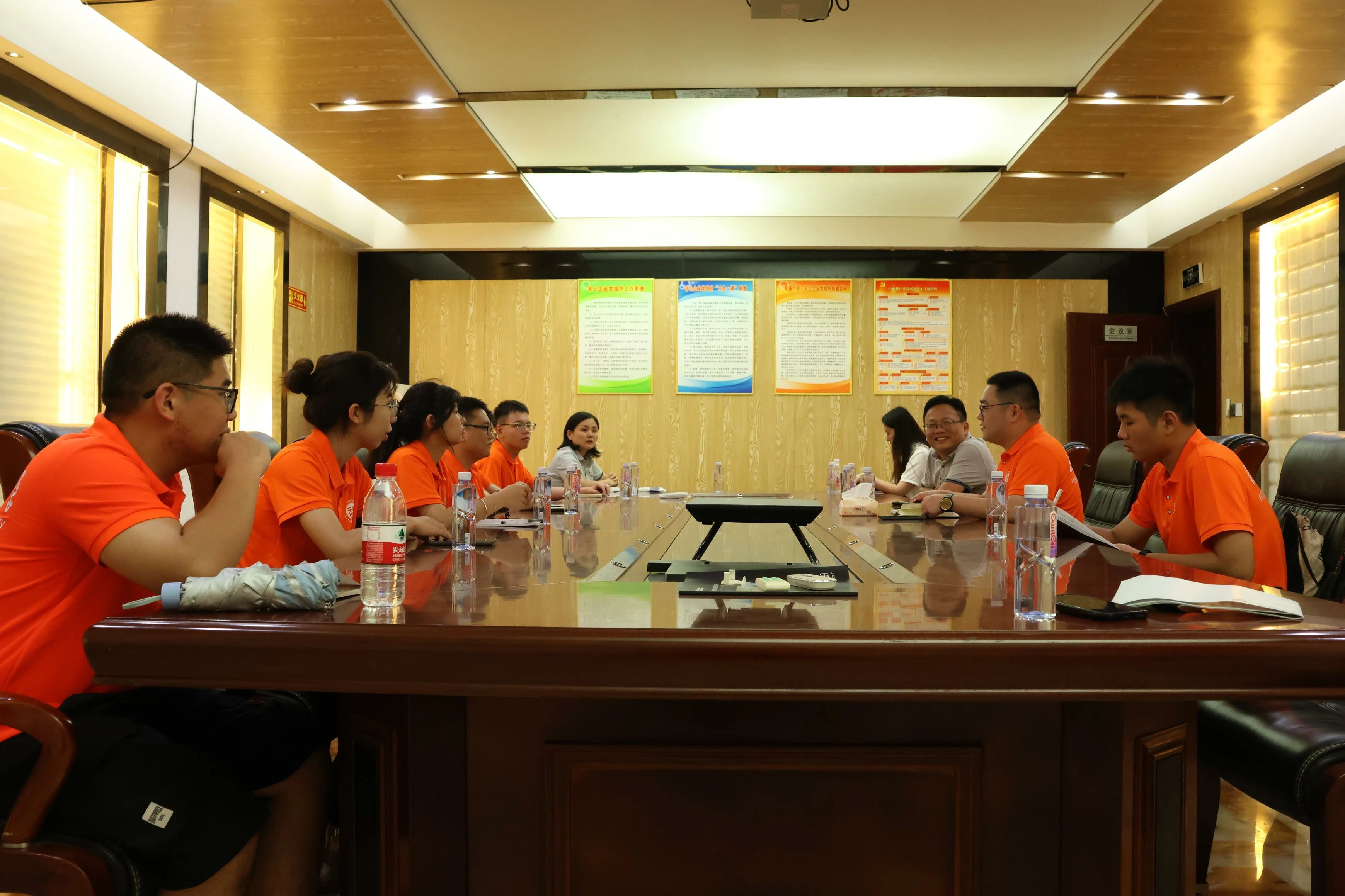 参观结束后,双方在会议室举行座谈会,企业管理人员介绍了行业发展现状、企业人才需求及未来技术趋势。队员们结合参观见闻,提出自己的疑问,并展开热烈讨论。在讨论中,校企双方就“轻量化设计”与“自动化替代边界”展开探讨。企业强调,通过结构创新降低生产成本,是应对市场竞争的关键。九兆科技一直致力于支架智能制造方案的研发与应用,希望能与大象传媒