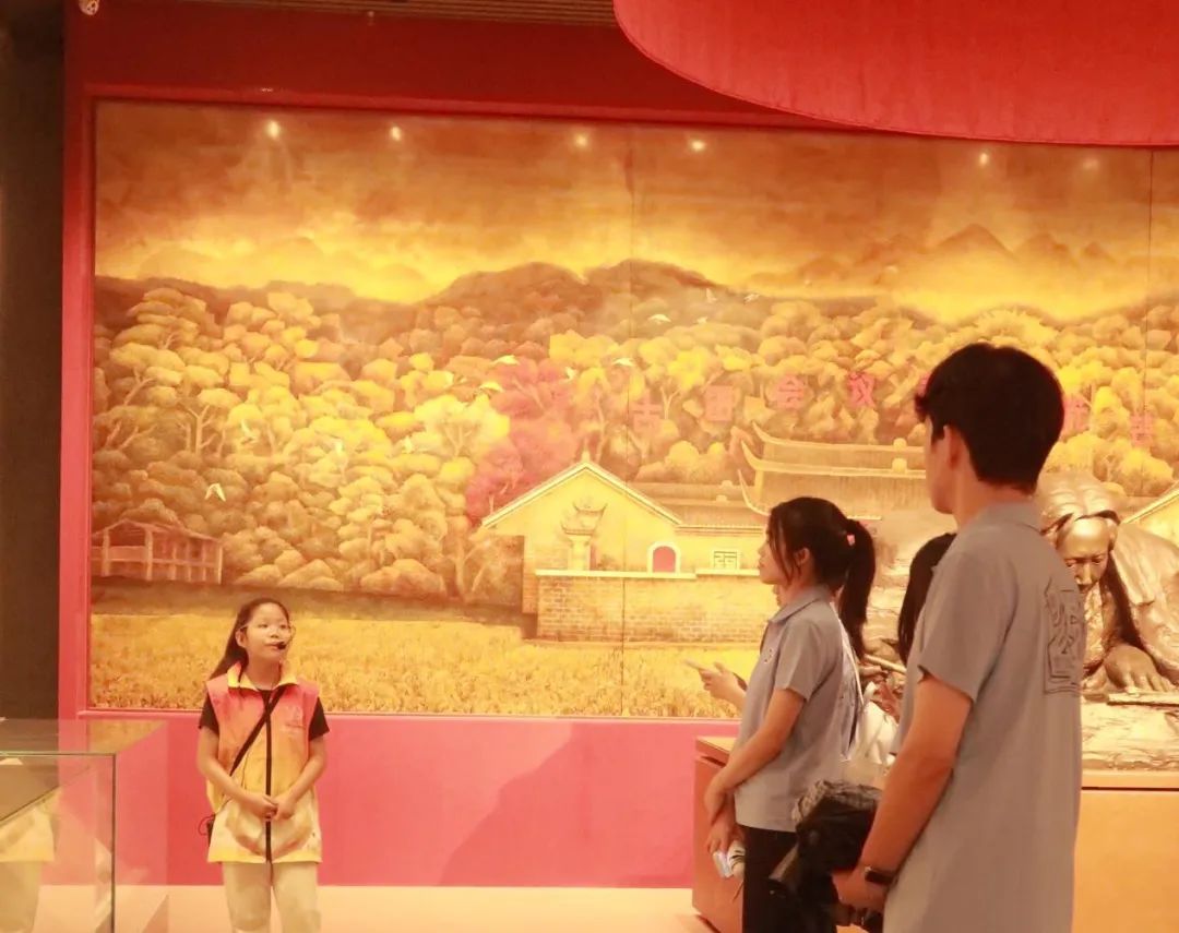 接着来到古田会议主题展区,小讲解员以稚嫩却满含热忱的声音,为实践队员们讲述古田会议的往昔。场馆内,暖黄壁画生动勾勒革命场景,红墙承载厚重历史。队员们专注聆听,从珍贵史料与讲解中,触摸古田会议确立思想建党、政治建军原则的伟大意义,感悟先辈坚定信仰与奋斗精神,让红色基因融入血脉,在传承中汲取奋进力量,续写新时代担当。