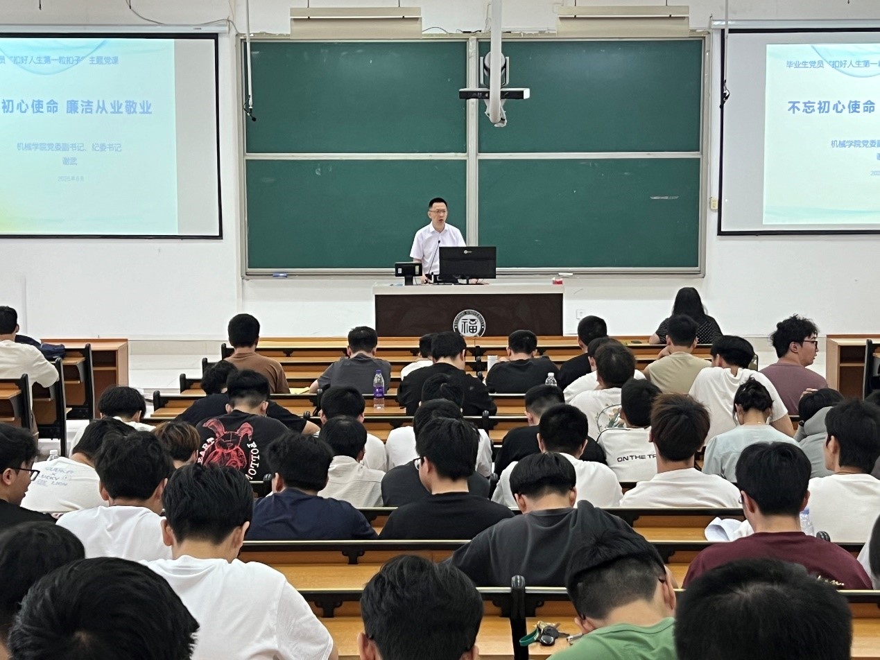 专题党课开始之前,谢武副书记对2025届毕业生党员顺利完成学业任务表示祝贺!他指出,毕业不仅是一个身份的转变,更是走向社会、走向岗位、走向未来的关键一步。在中国式现代化建设新征程中,机械学子肩负重任、使命光荣。他希望,全体党员要坚守初心、不辱使命,勇于担当、严于律己,走好人生“第一步”,走稳从业“每一步”。