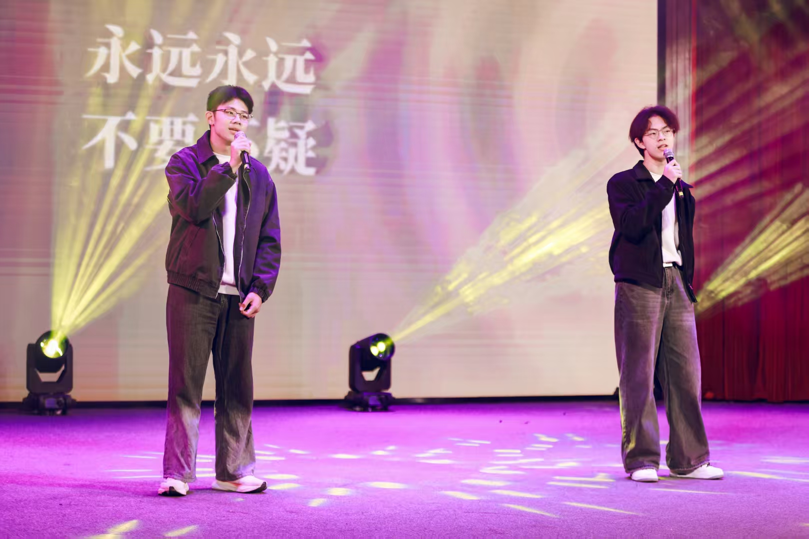 每一朵蔷薇都承载着青春的梦想,每一次绽放都诉说着美好的期盼,阿丽米娜和刘津佑同学携手带来的《手心的蔷薇》温暖了夜晚,两人的演唱默契十足,高低音的交织错落有致,每一句歌词都饱含着真挚而细腻的情感,将歌曲中藏在手心的眷恋与守护诠释得淋漓尽致。