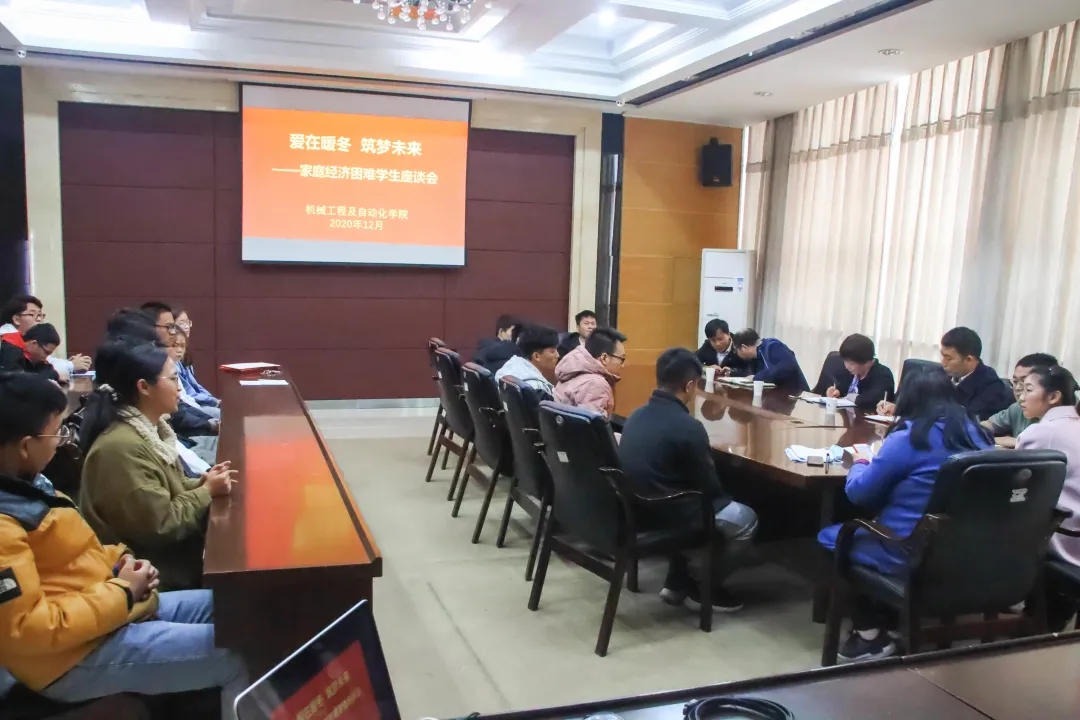 于机械院楼南401会议室举办“爱在暖冬,逐梦未来”——2020年家庭经济困难学生暖冬计划活动启动仪式。院党委倪朝霞书记、钟舜聪院长、林文麟副书记、院党委正科级组织员刘旭莹老师、团委副书记林成金老师及各年级辅导员、家庭经济困难学生代表出席会议,会议由李辉容老师主持。