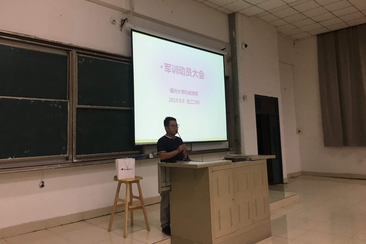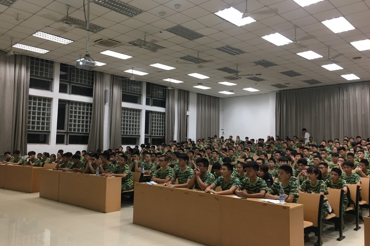 全体2019级新生于东2-100召开军训动员大会,会议由2019级辅导员李辉容老师主讲。