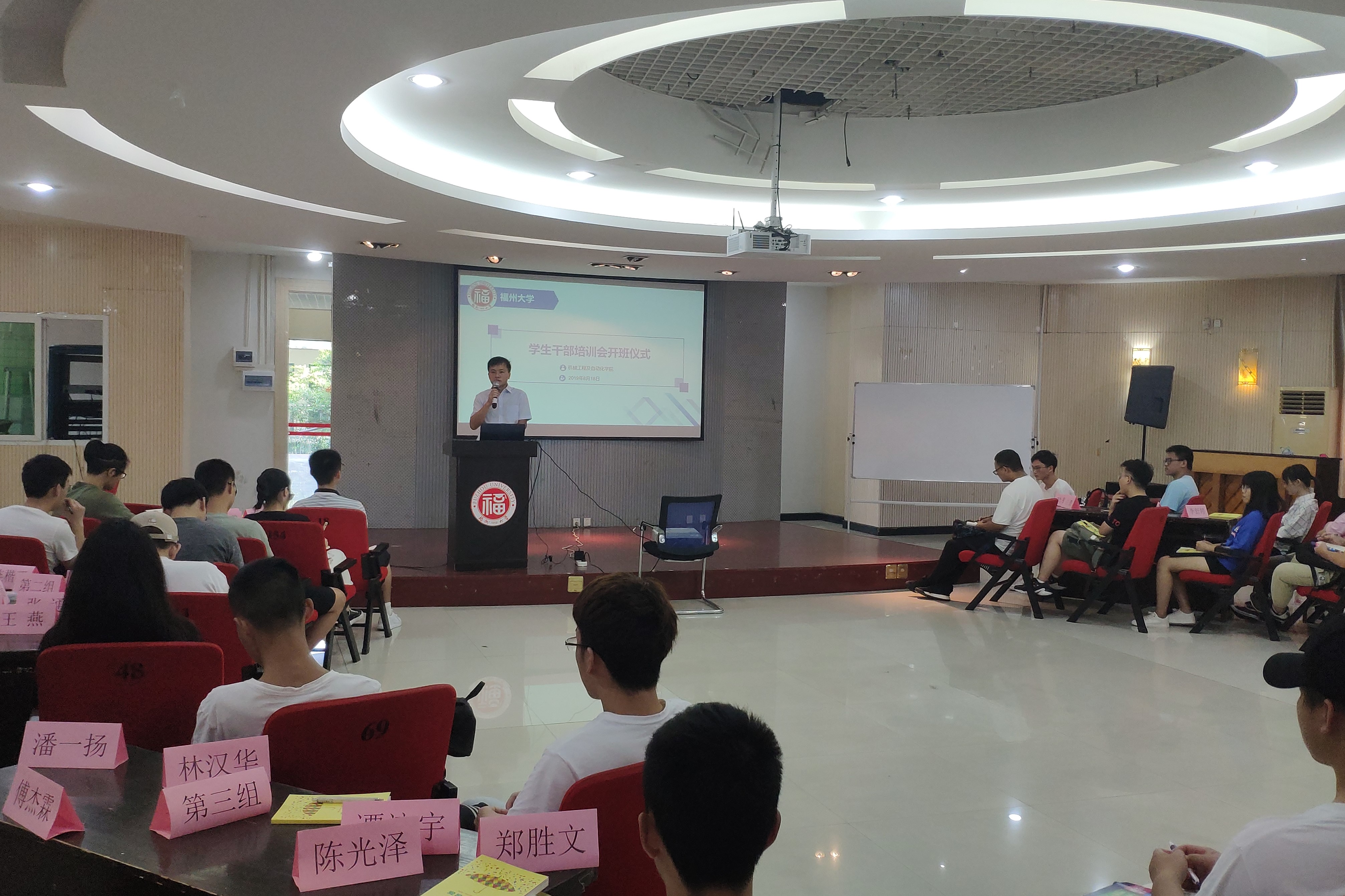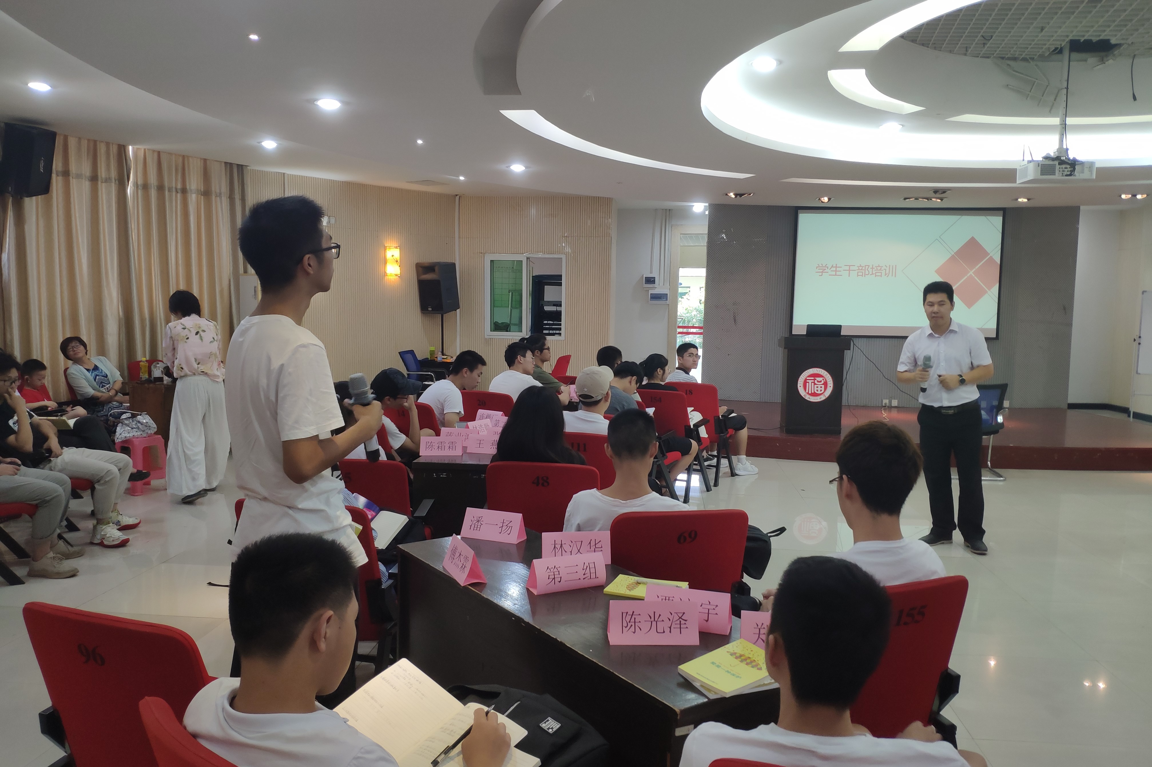 于学生素质拓展中心展开为期五天的学生干部培训会。本次培训会由院党委组织员刘旭莹老师、2017级辅导员陈伯豪老师主持,院党委副书记林文麟老师、校团委陈永青老师、院团委副书记林成金老师参加本次培训会。