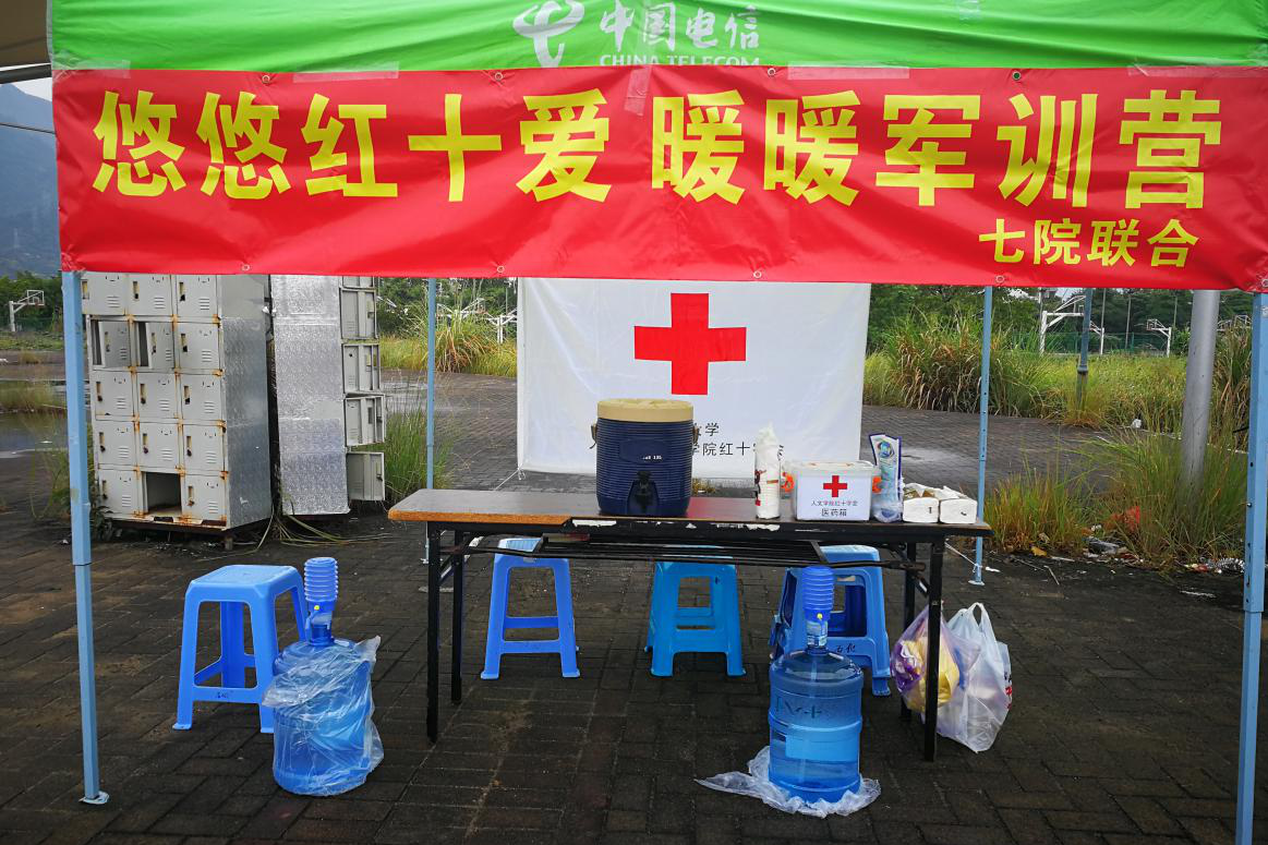 志愿服务中心联合开展志愿服务活动,于一区、三区操场设立“悠悠红十爱,暖暖军训营”军训服务站。