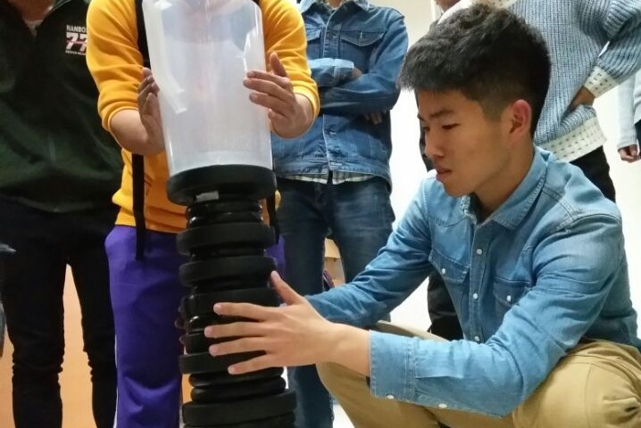 比赛中,参赛同学充分发挥各自的想象力并灵活运用了所学的力学知识,制作了各式各样的承重机构。其中不乏有传统实用的框架结构,美观耐用的瓦楞结构,还有坚固抗压的圆柱结构,且有多组结构成功承受了比赛最大限度40kg的重量,赢得了其余同学的赞扬和裁判的好评。