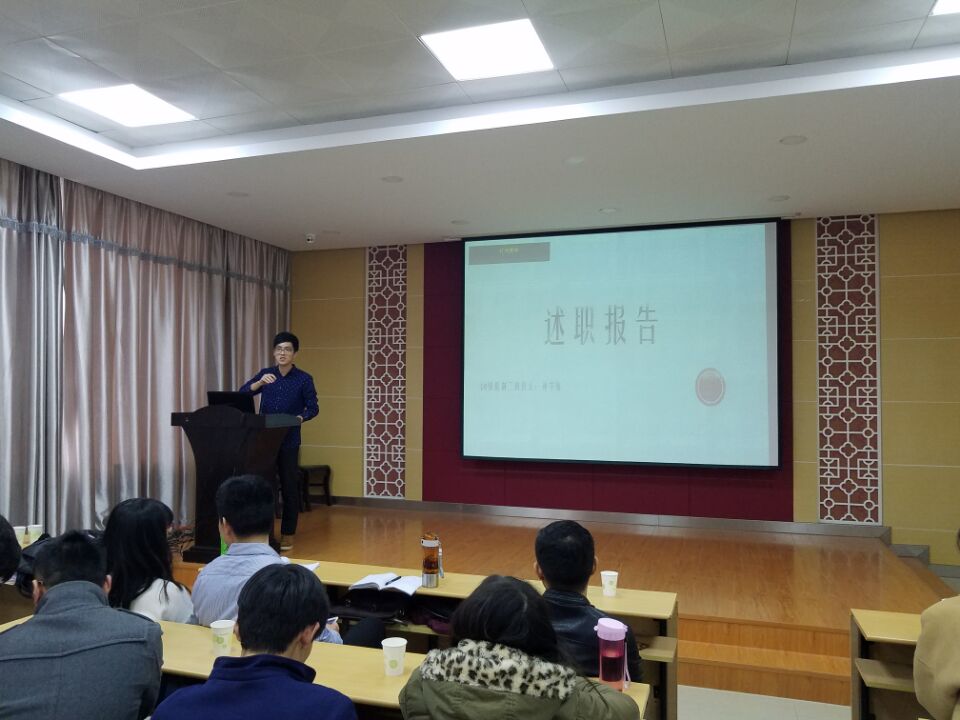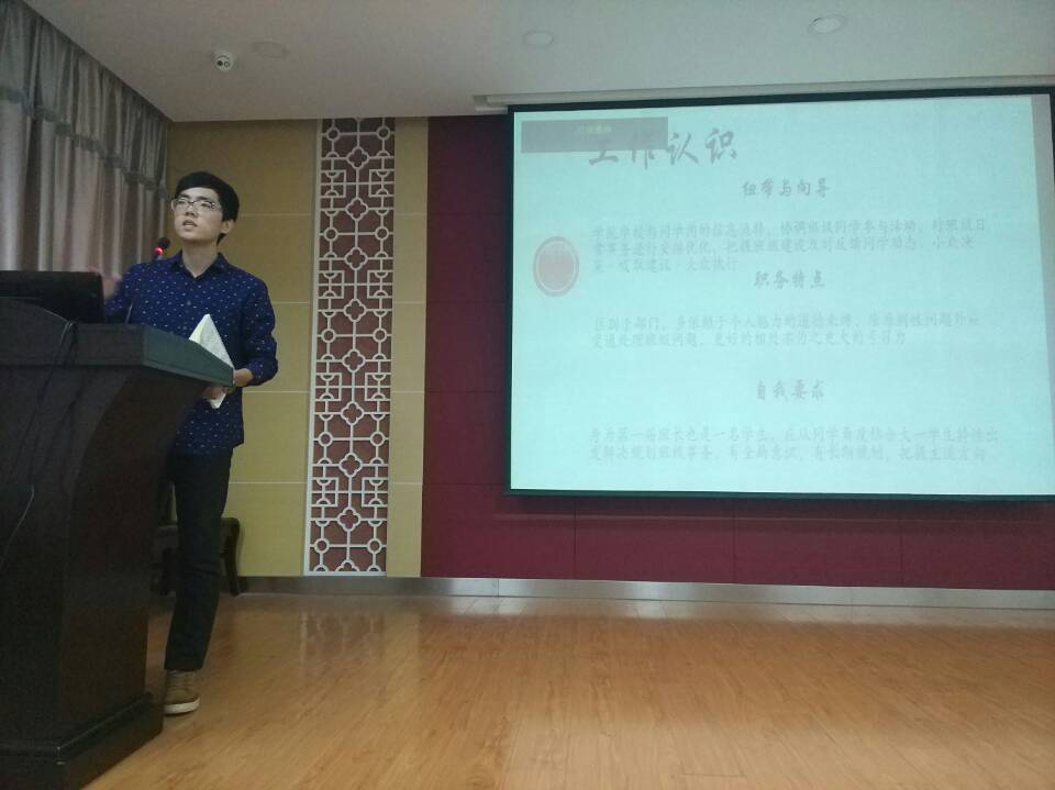 于机械北楼415会议室举行2016级班委述职大会。2016级辅导员陈伯豪老师和陈谊老师、2015级辅导员金瑞老师以及大象传媒