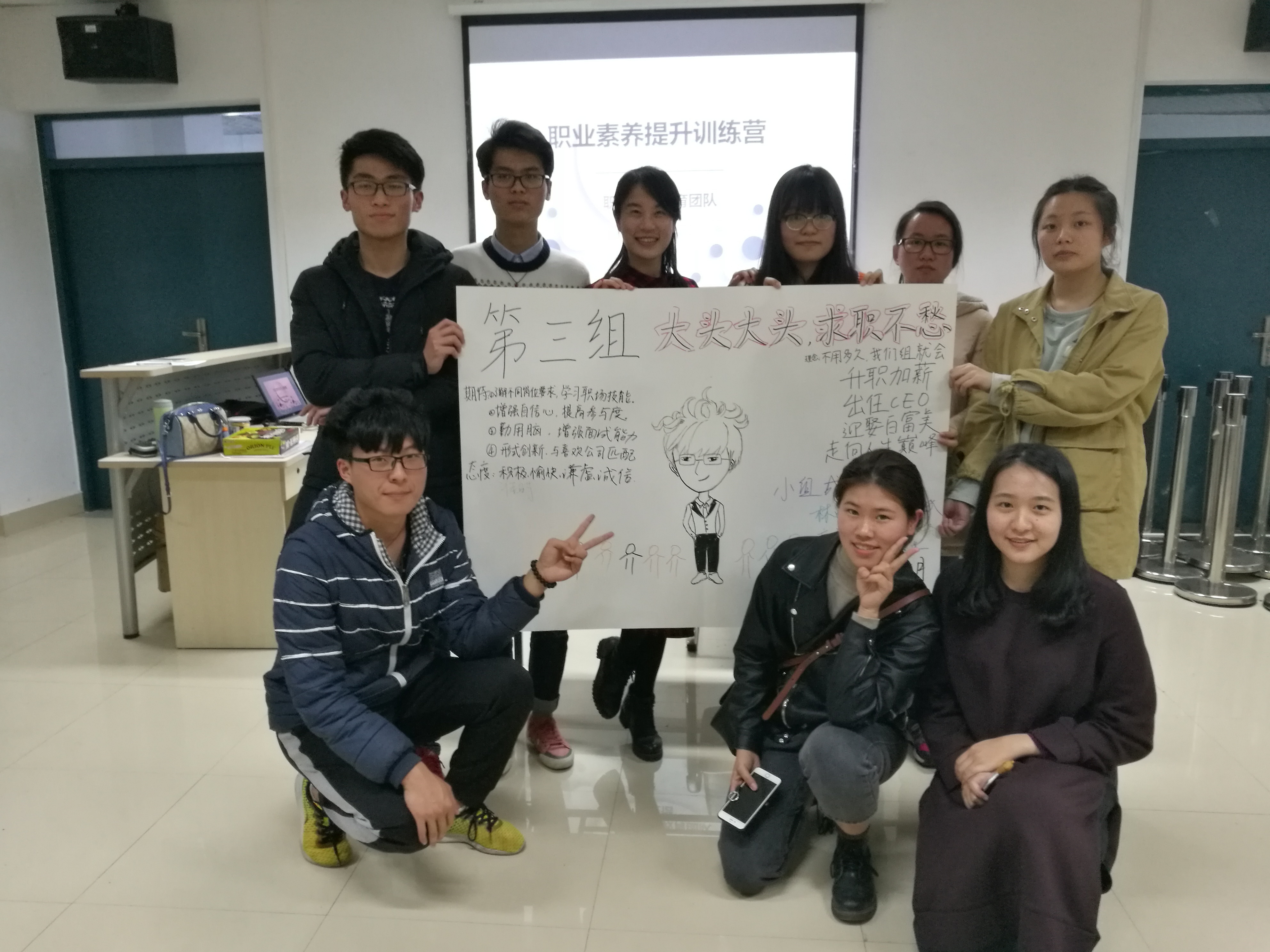 在此次训练营中,王怡老师通过“大风吹”,“幕布猜人”“我们的团队”三个活动让同学们在实际活动中体会如何才能在陌生的新环境中让别人迅速记住自己,增强自己的职业竞争能力。现场气氛热烈,高潮不断。