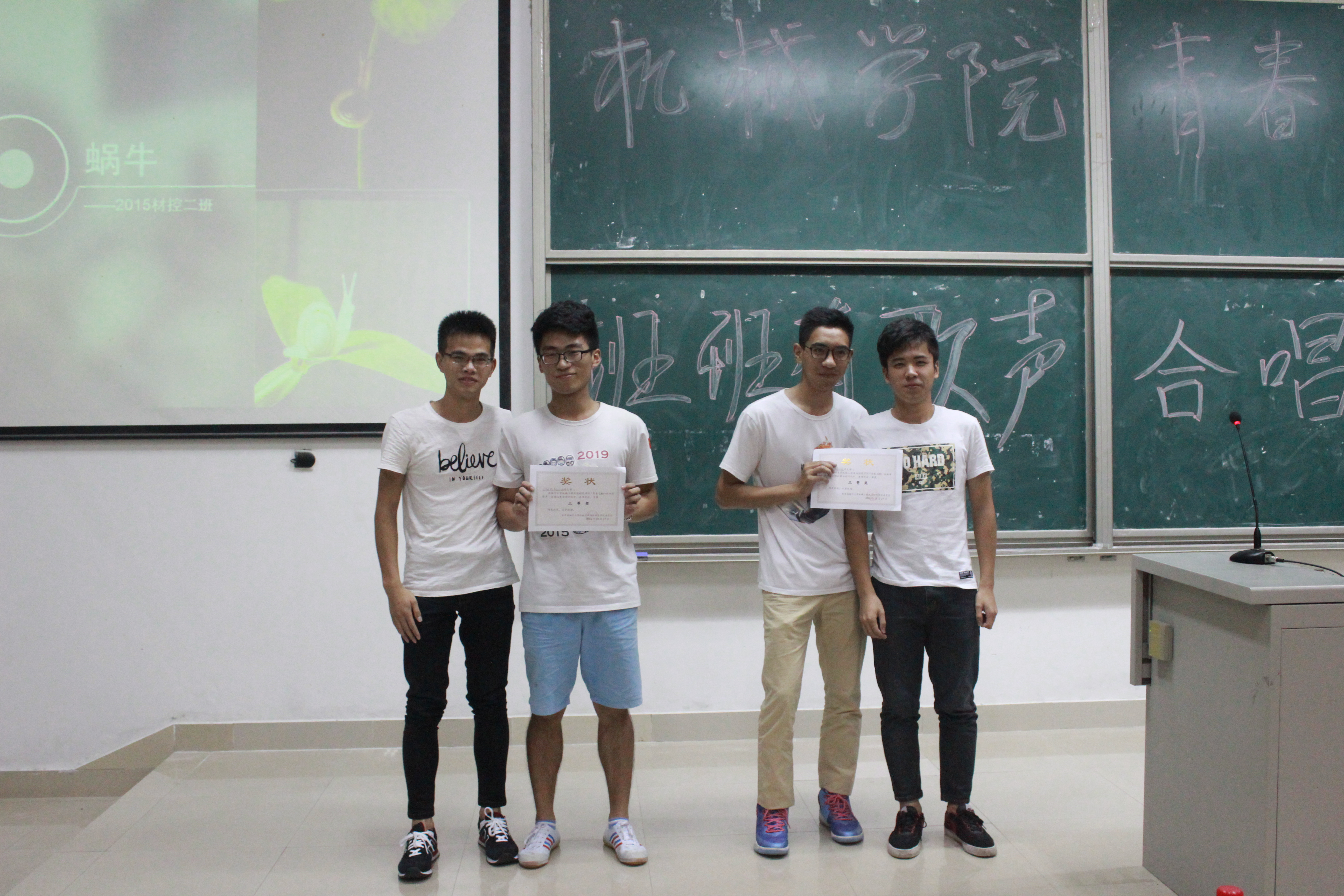 活动开始,由主持人介绍出席本次活动的嘉宾,同时介绍了评分细则。接着各班级依次上台合唱。各班级表现出色,节奏整齐、音色统一,同时具有良好的舞台效果。表演形式多样,在合唱中穿插了朗诵、舞蹈等。最后,材控一班斩获一等奖,材控二班荣获二等奖,机制二班和机制五班荣获三等奖。