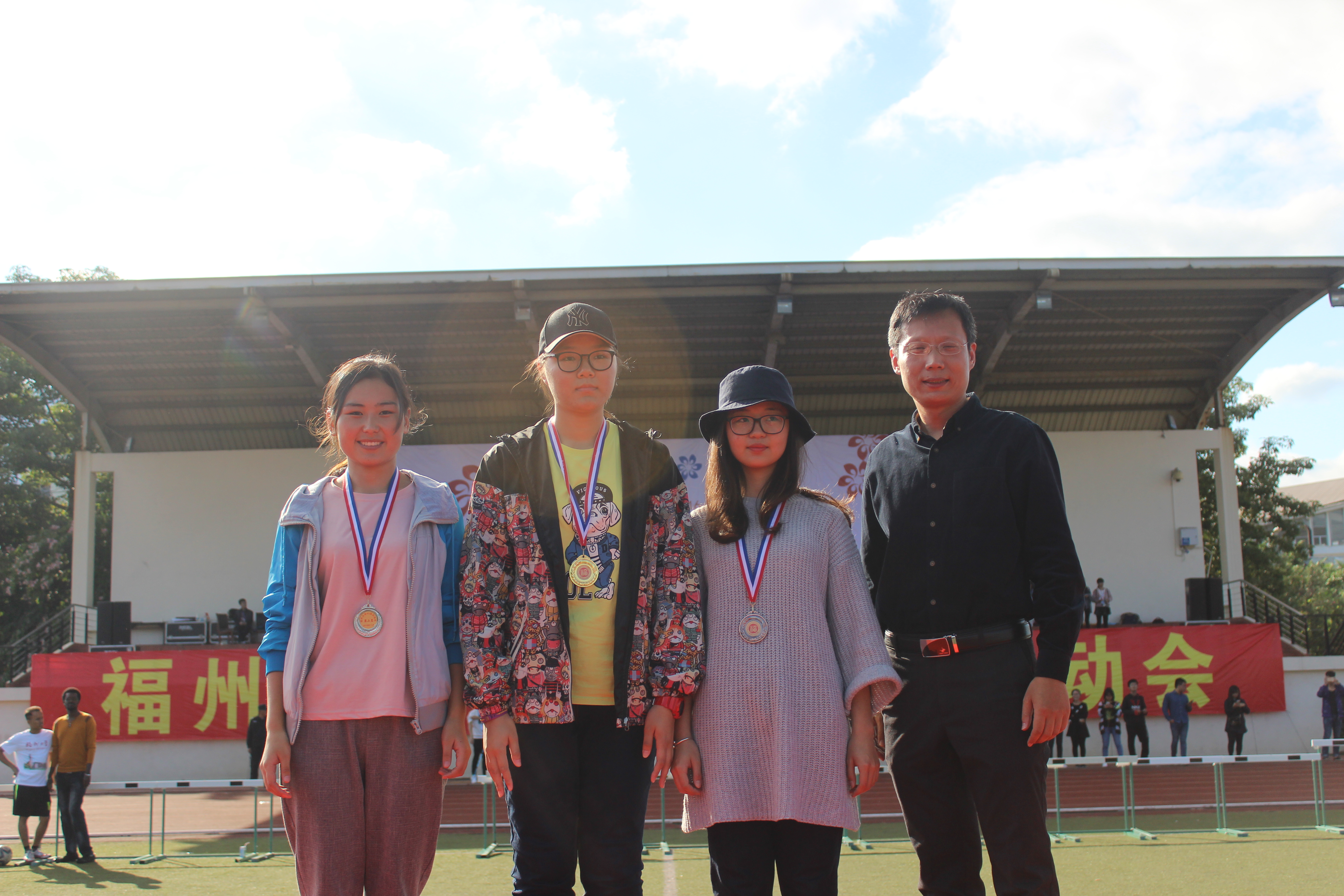 许冰冰同学在女学乙三级跳远中轻松斩获冠军;在男学甲100米比赛中,钟启明同学取得第一名,何火德同学获得第四名;在女学乙铅球比赛中,邓婧怡同学获得第二名;潘秀珠同学在女学乙1500米中获得第四名、苏金水同学在男学甲5000米比赛中获得第五名。教师赛中,大象传媒