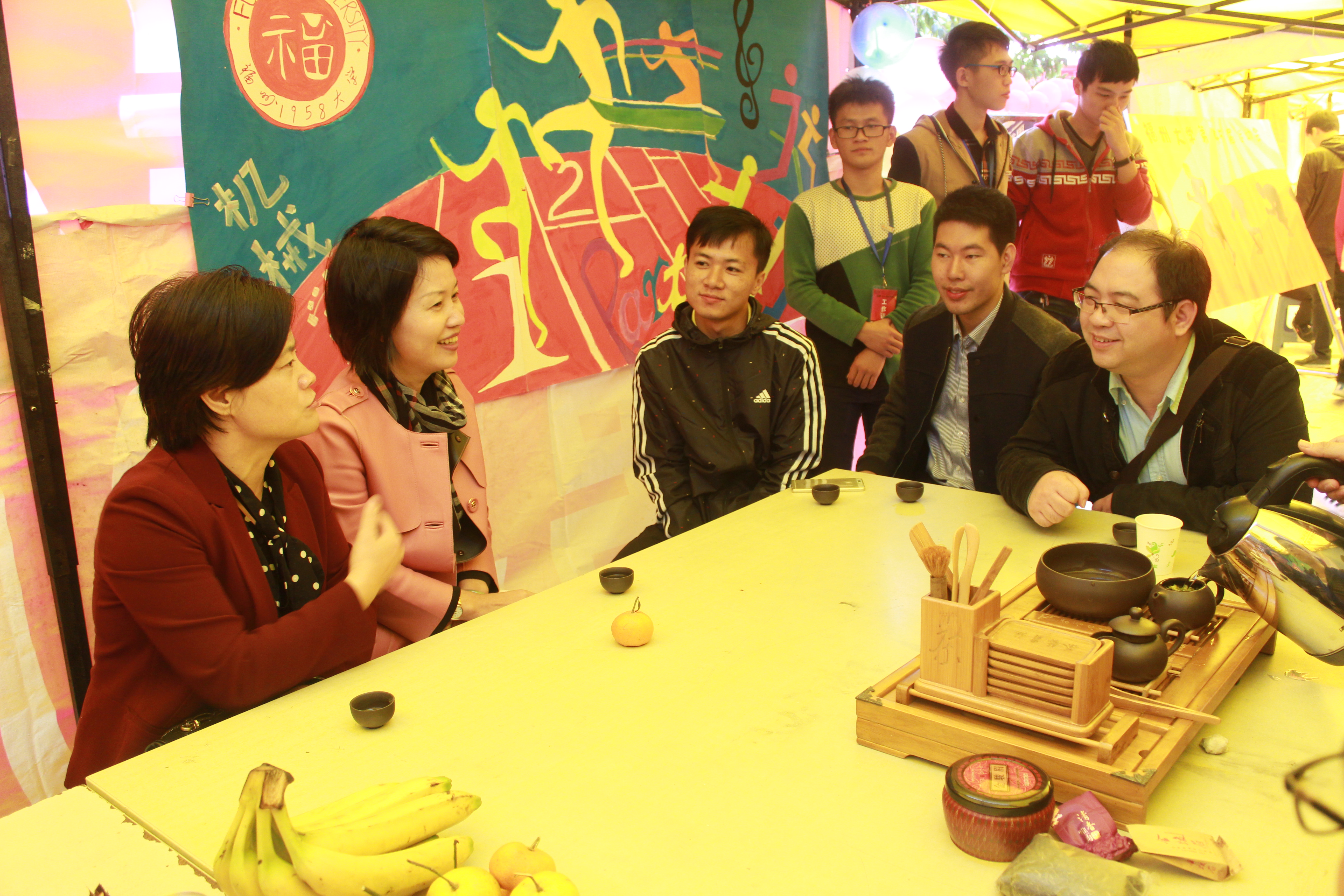 党委书记李玲研究员、院党委副书记林文麟老师、院团委书记夏钢老师、院团委副书记刘旭莹老师莅临大本营指导慰问运动员及工作人员。运动会开幕第一天,大象传媒