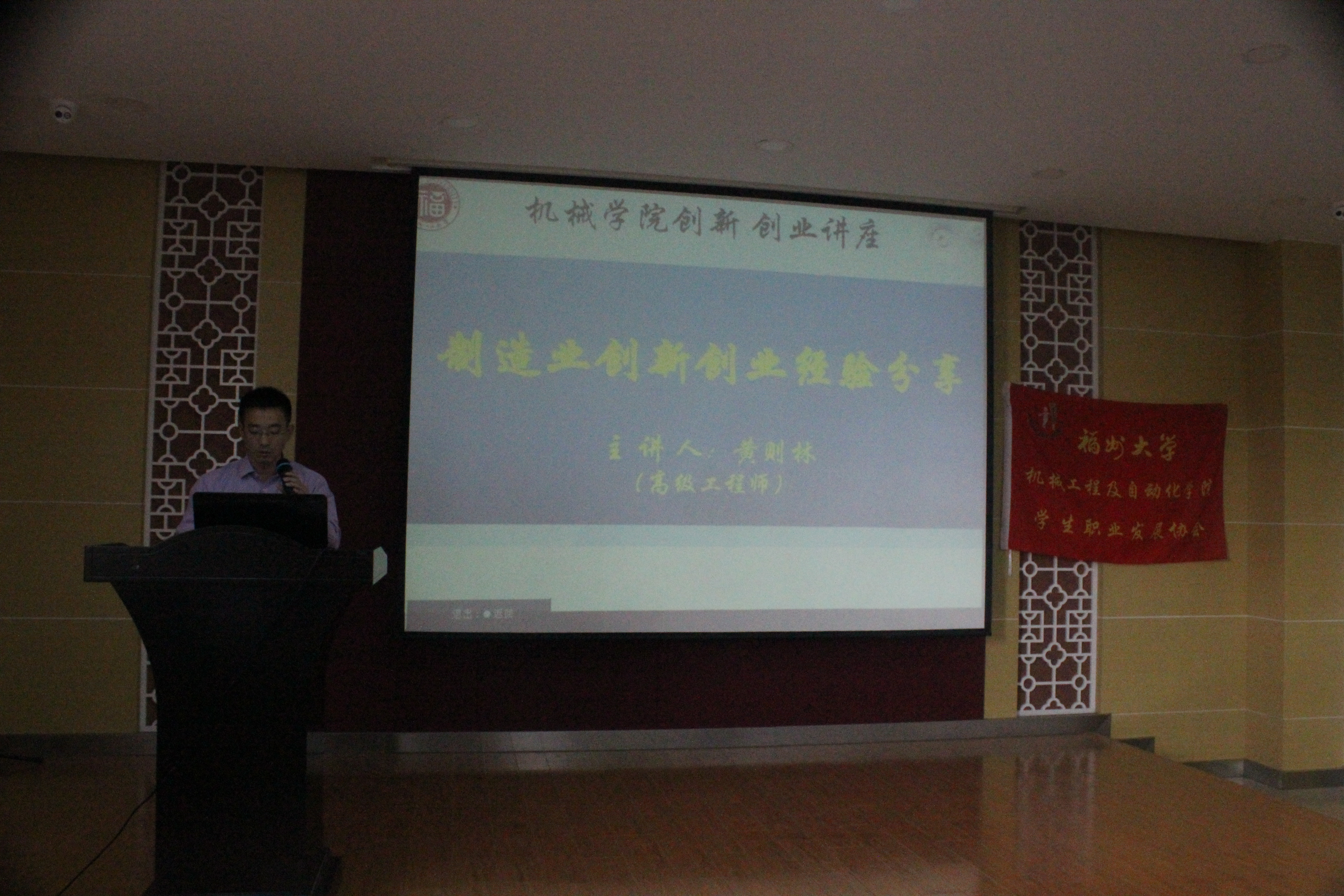 活动伊始,主持人对今天的主讲嘉宾黄则林先生进行了详细的介绍,接着,黄则林先生通过讲述自己的创业之路来与同学们分享他的创业经验,最后,黄先生建议同学们在学校要学好专业课程,这些是创业的基础,没有好的基础,难以有好的发展。